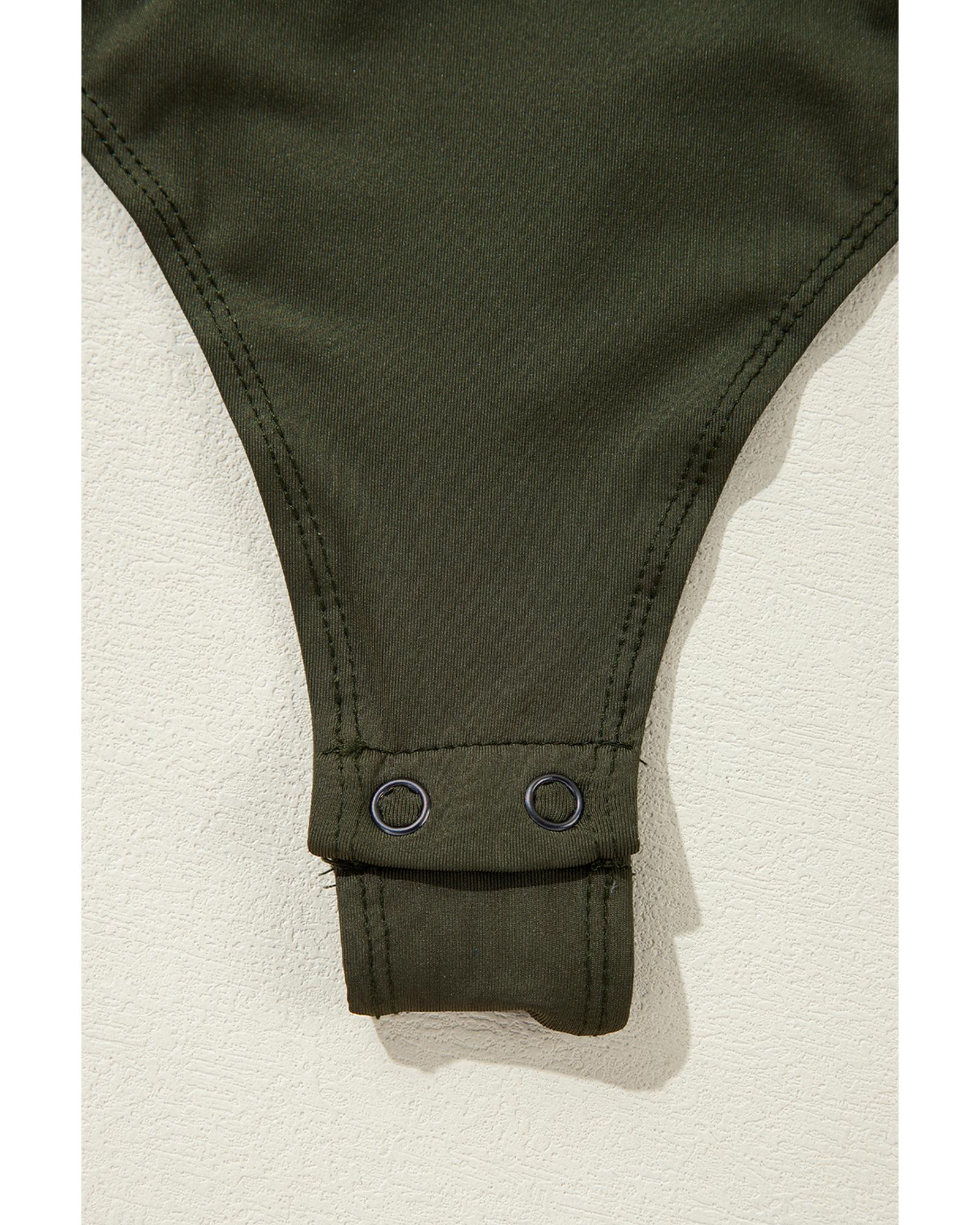 Moss Green Ruched Wrap V Neck Long Sleeve Bodysuit – XL
