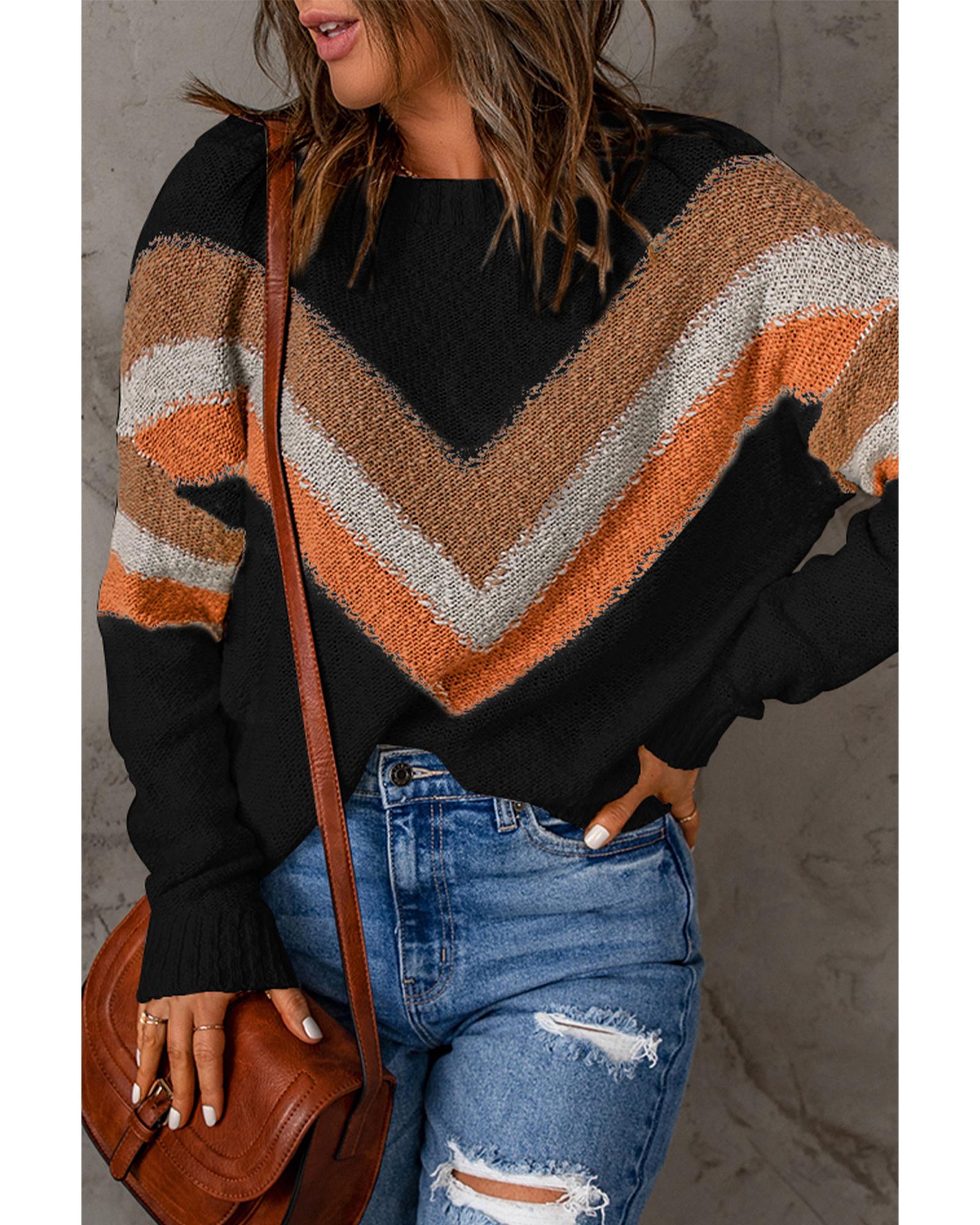 Multicolor Chevron Striped Drop Shoulder Sweater – S