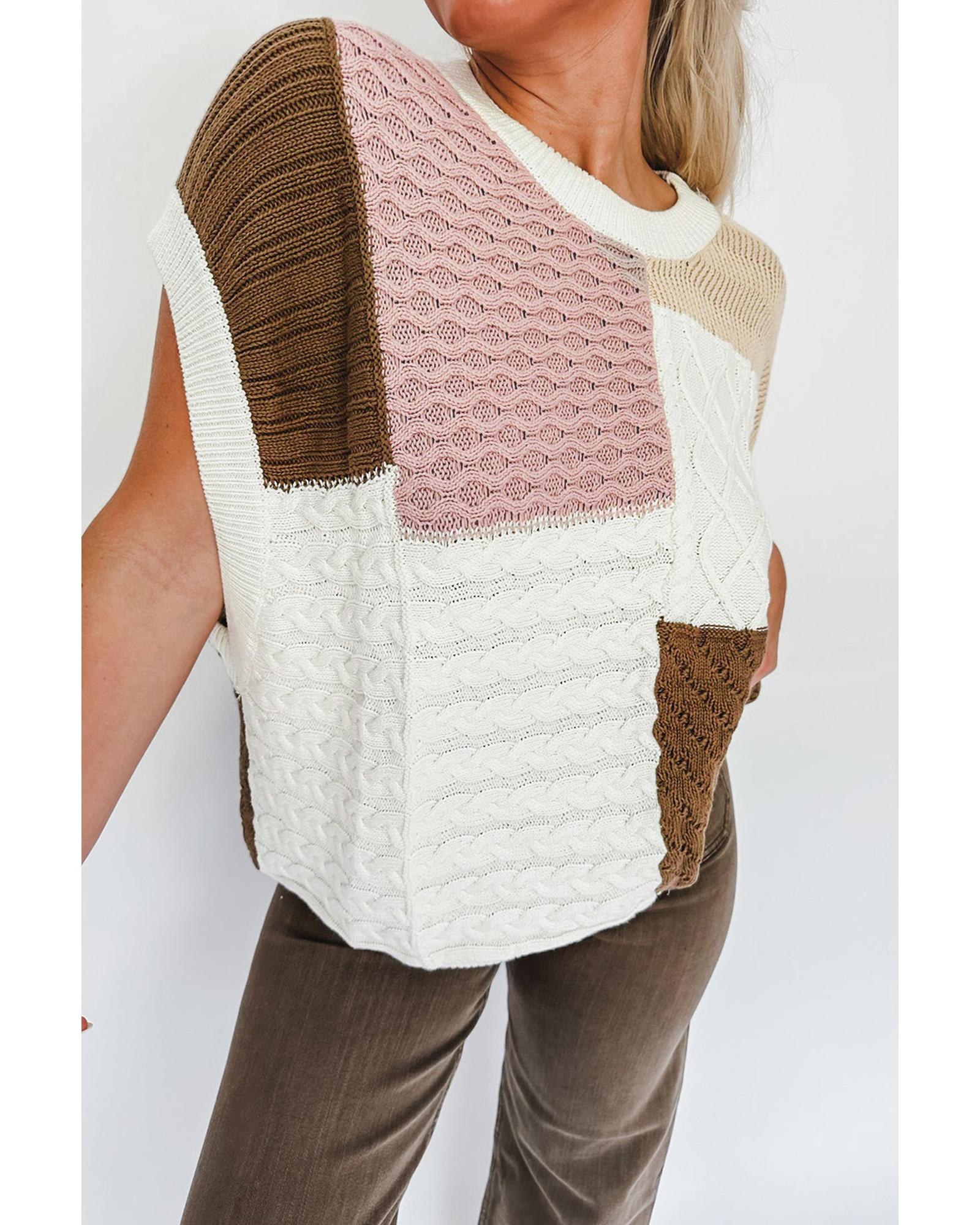 - Multicolor colorblock mix textured sweater tee