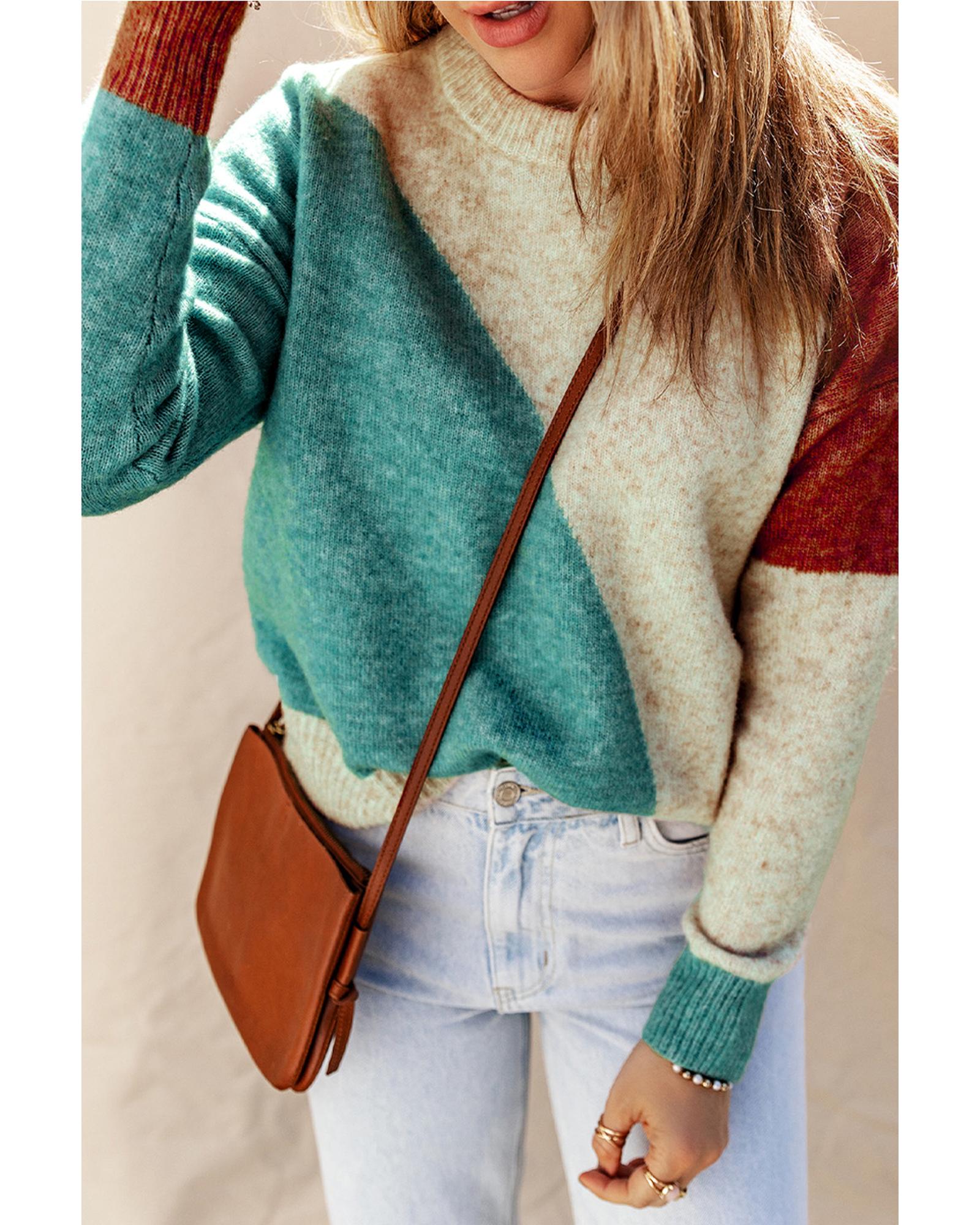 Multicolor Colorblock Ribbed Trim Round Neck Sweater – M