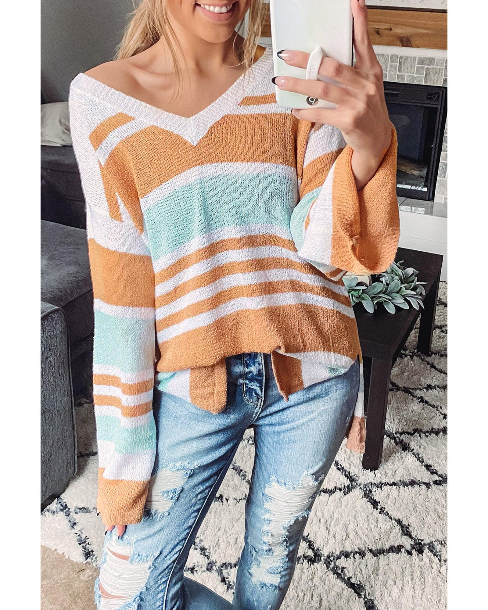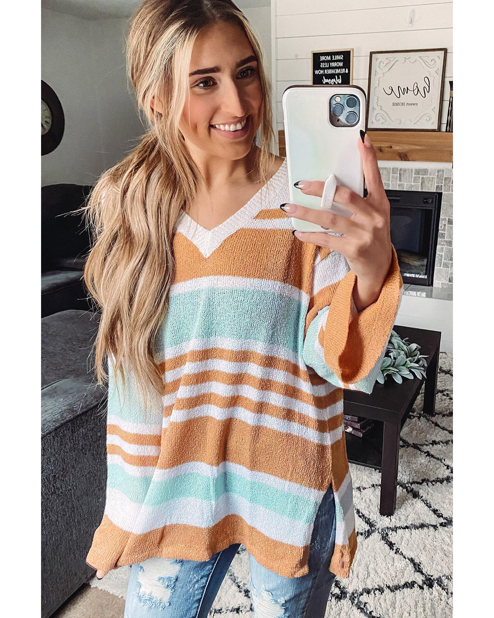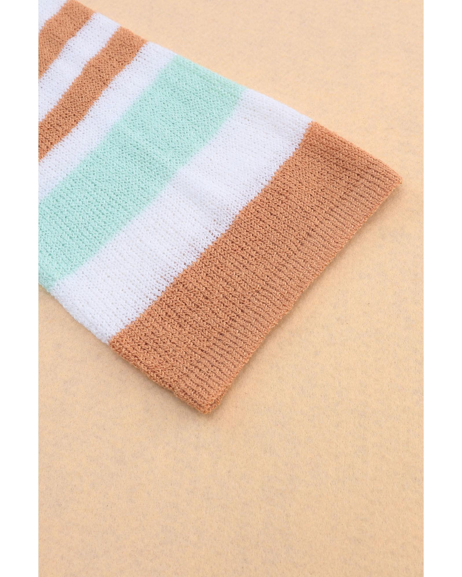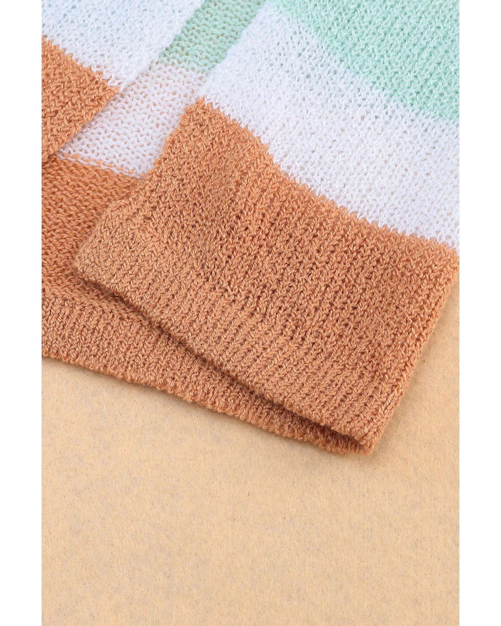 Multicolor Colorblock Stripe Long Sleeve Split Sweater – XL