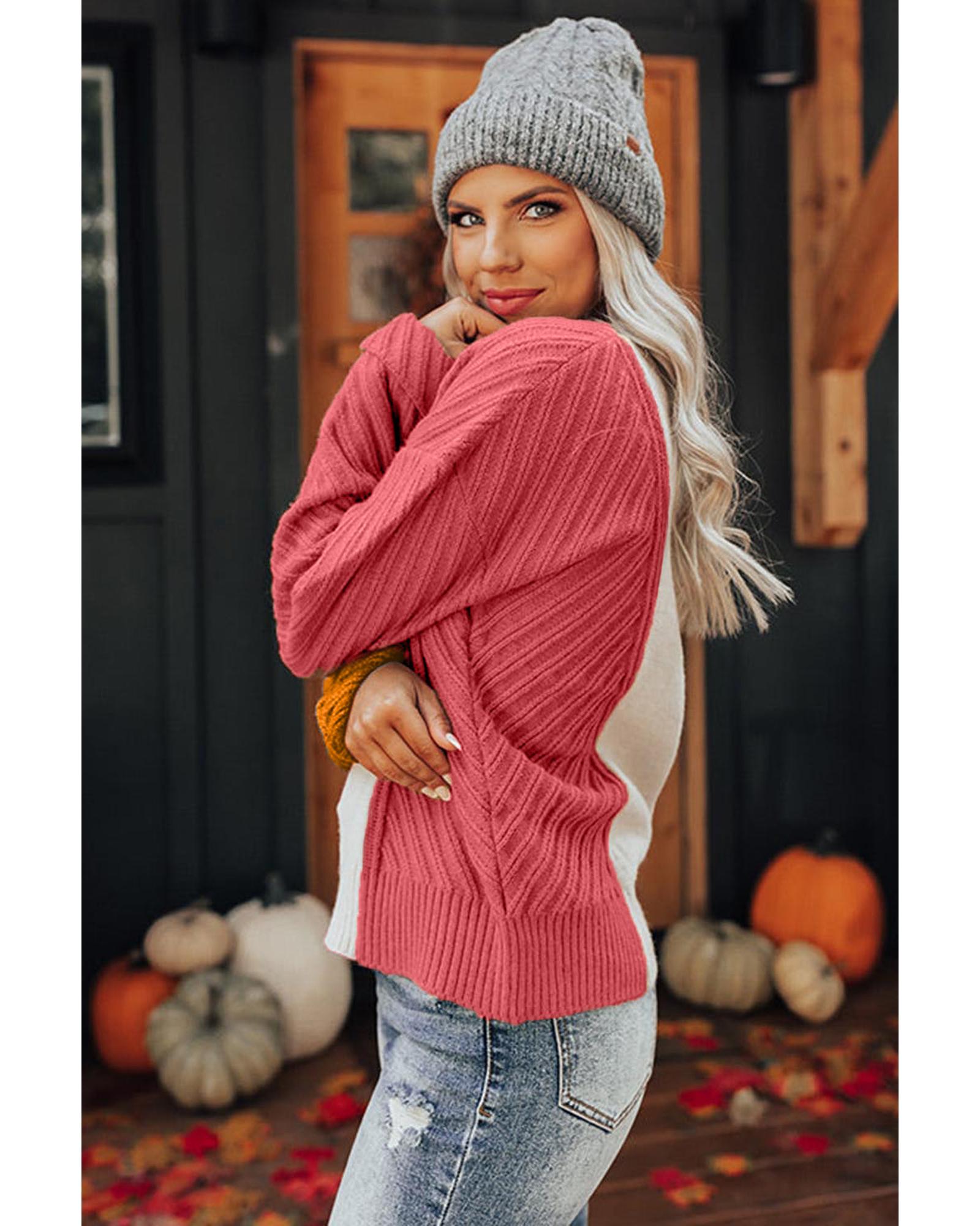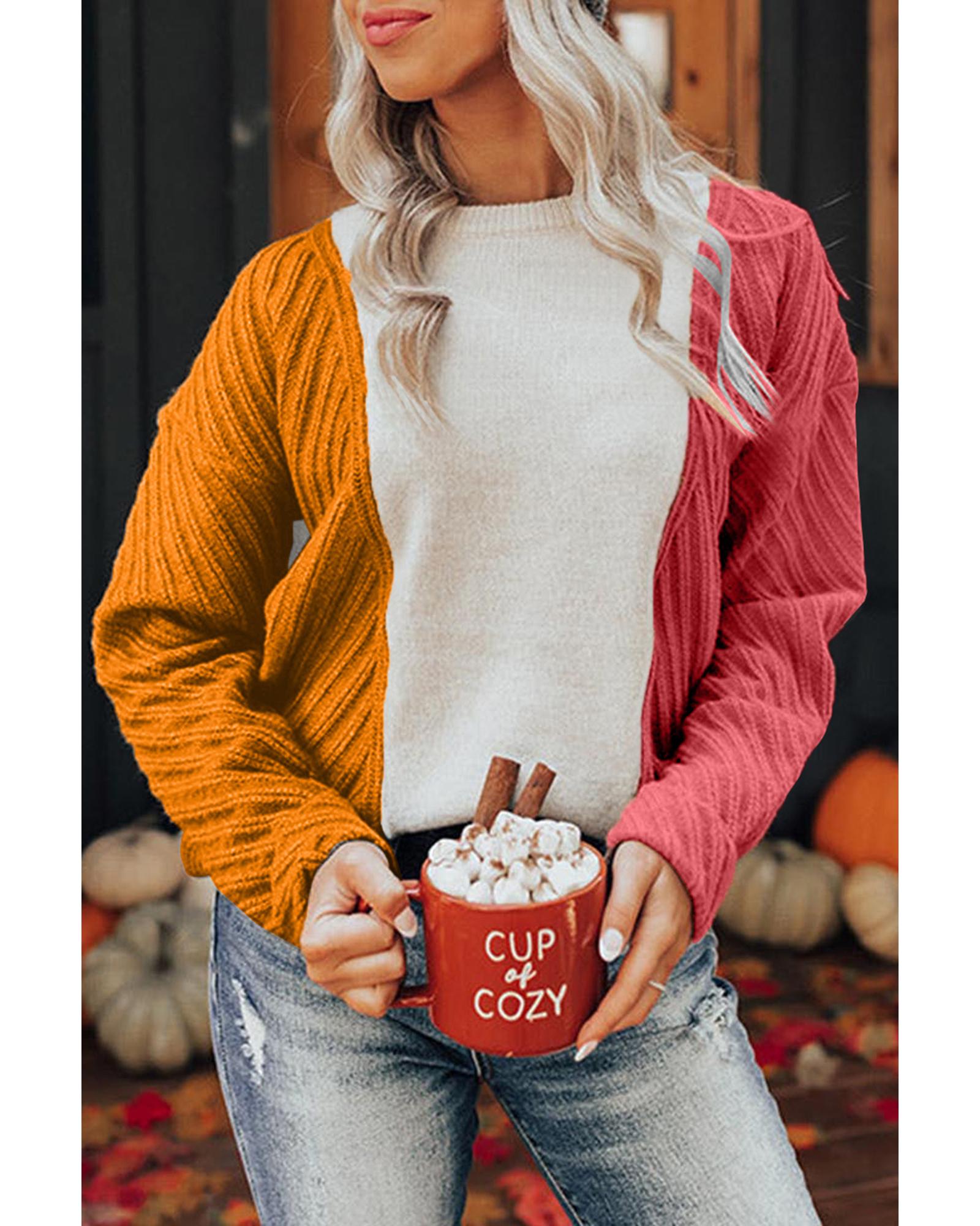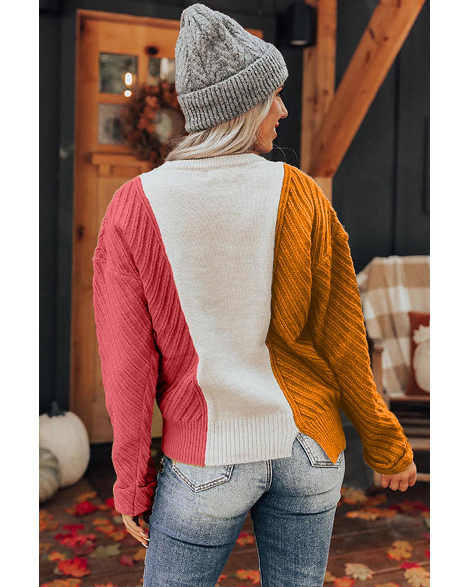 Multicolor Colorblock Textured Drop Shoulder Sweater – L