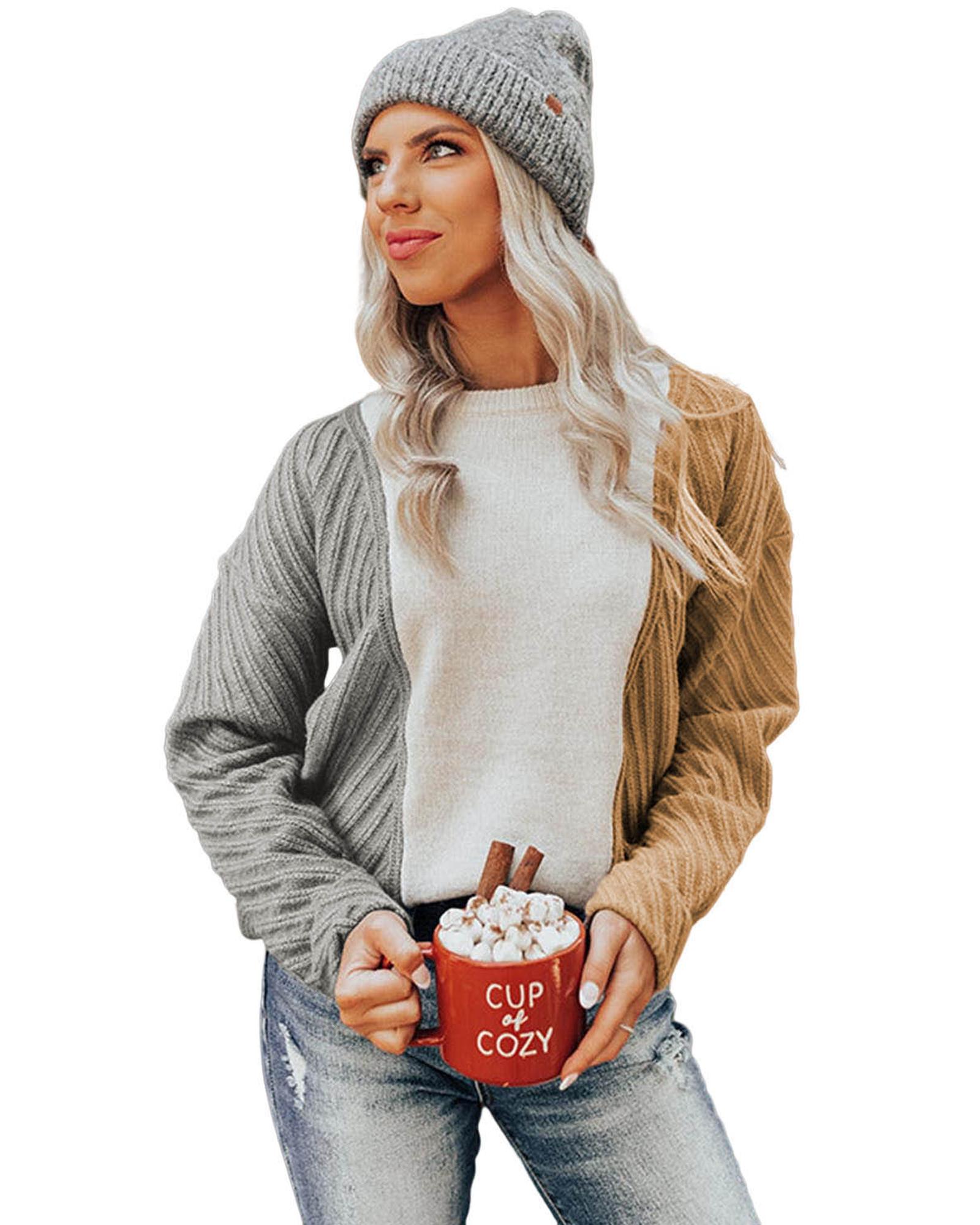 - Trendy color block design in neutral hues