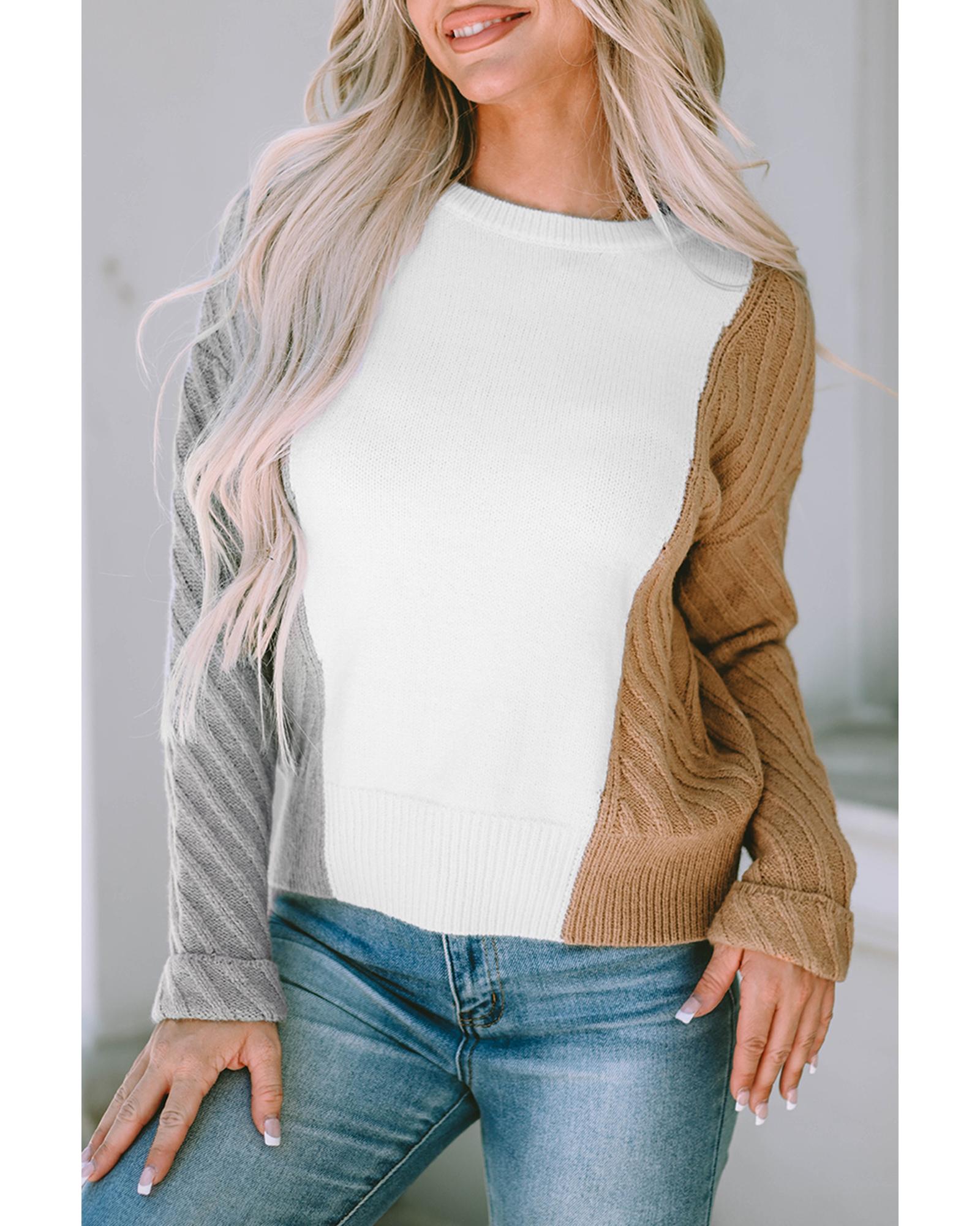 Multicolor Colorblock Textured Drop Shoulder Sweater – M