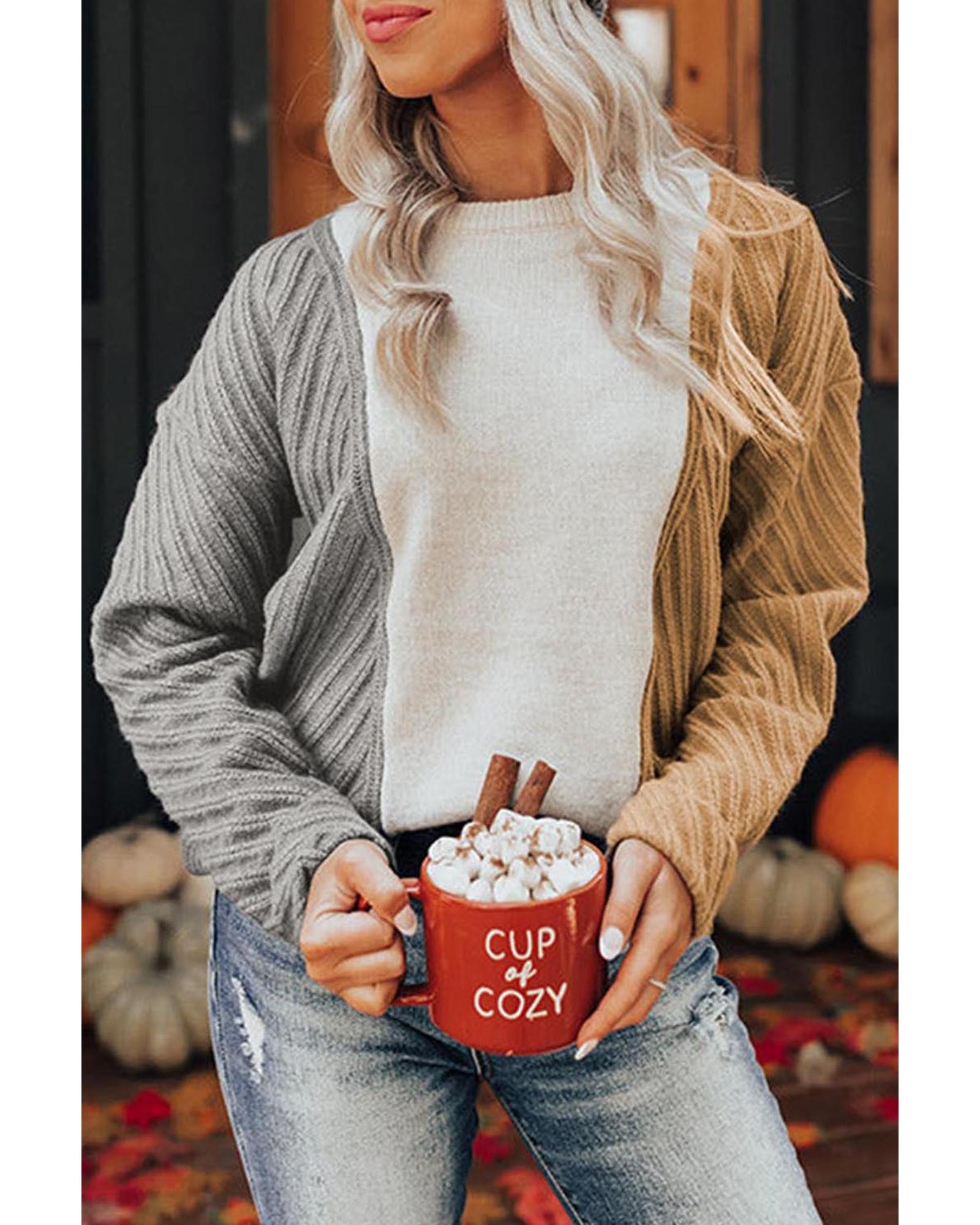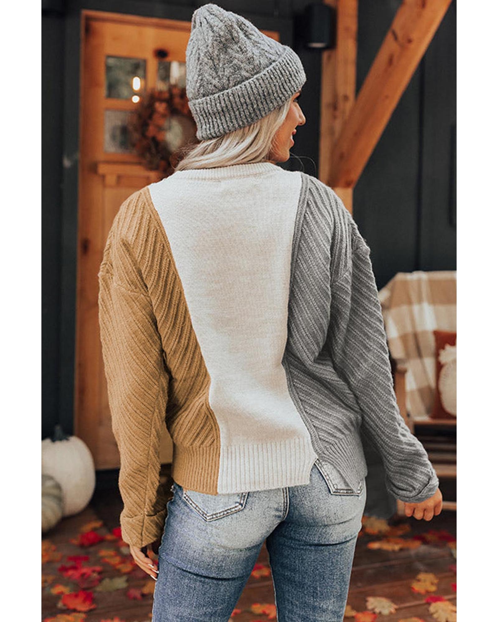 Multicolor Colorblock Textured Drop Shoulder Sweater – S