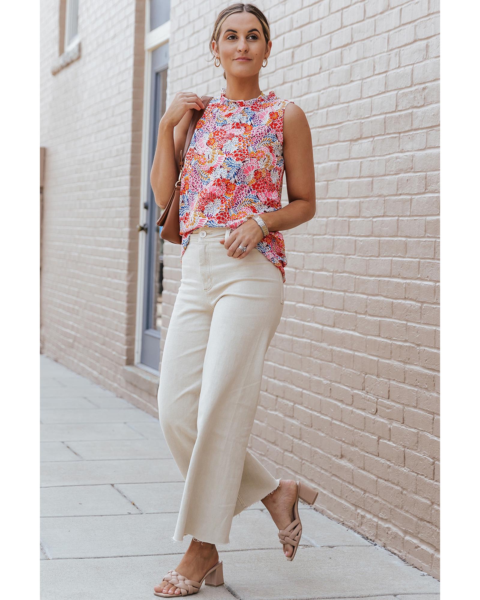 Smoke Gray Ribbed Knit Colorblock Edge U Neck Slim Fit Tank Top - L