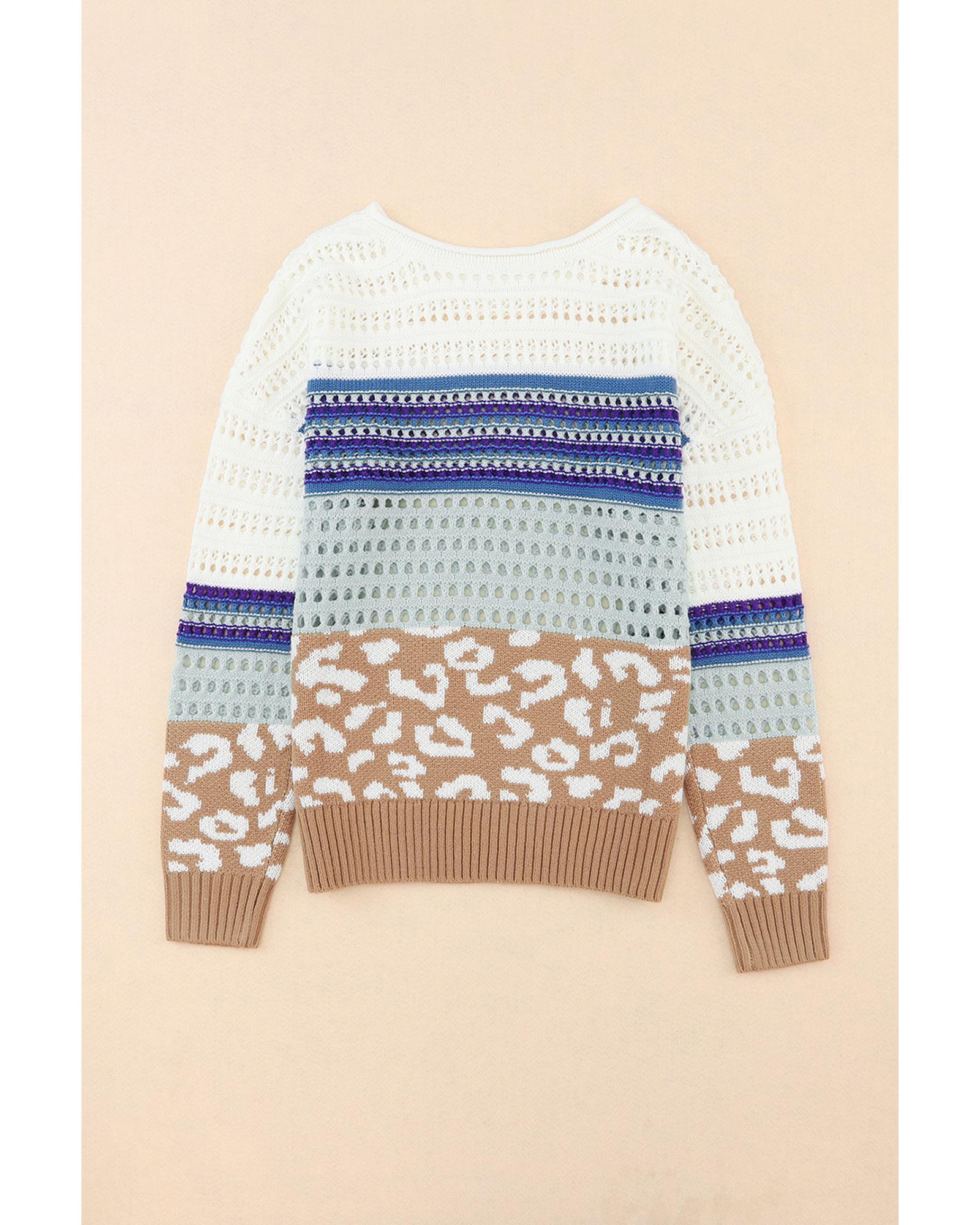 Multicolor Leopard Striped Mix Pattern Knit Crochet Sweater – XL