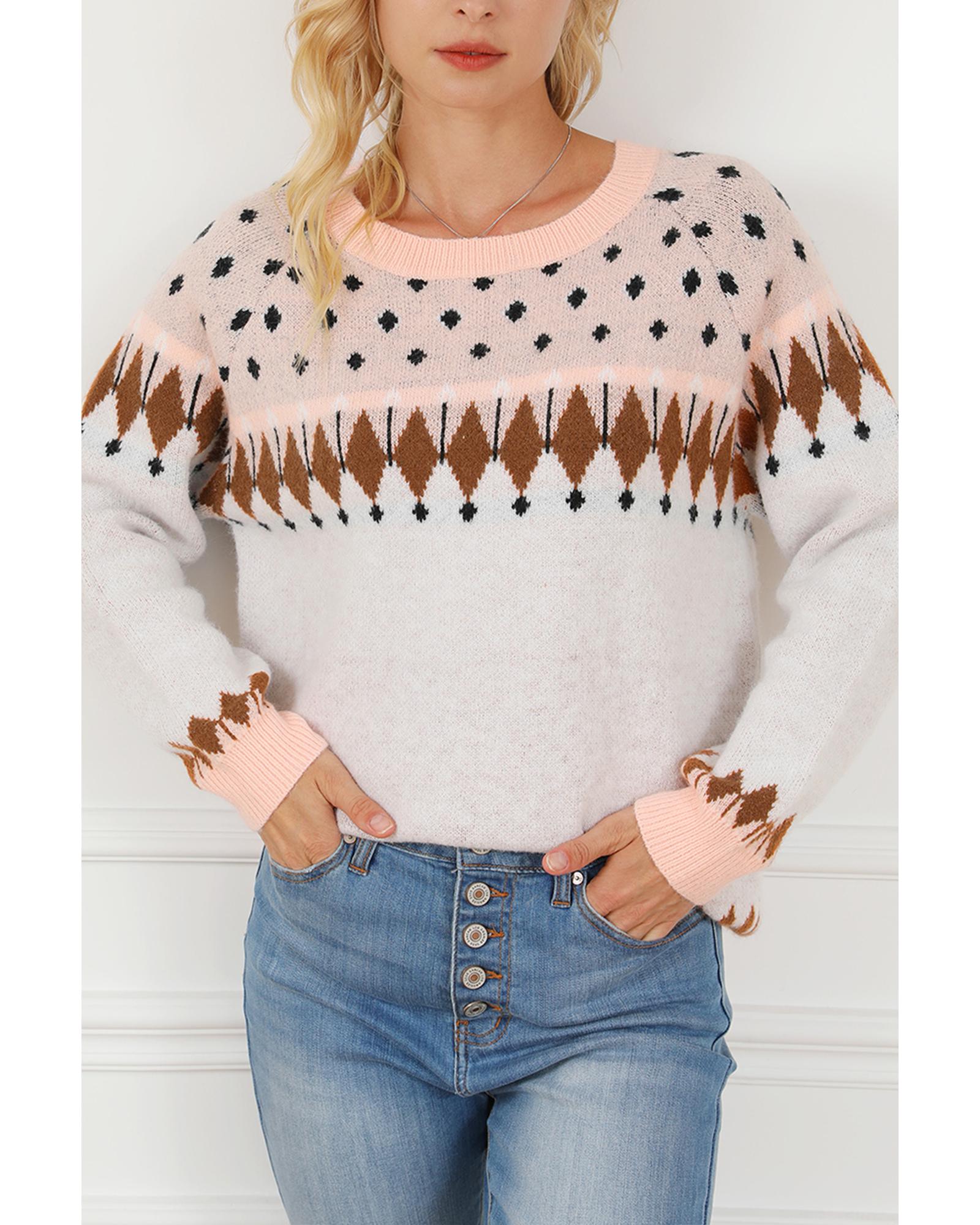 Multicolor Mixed Geometric Detail Raglan Sleeve Sweater – L