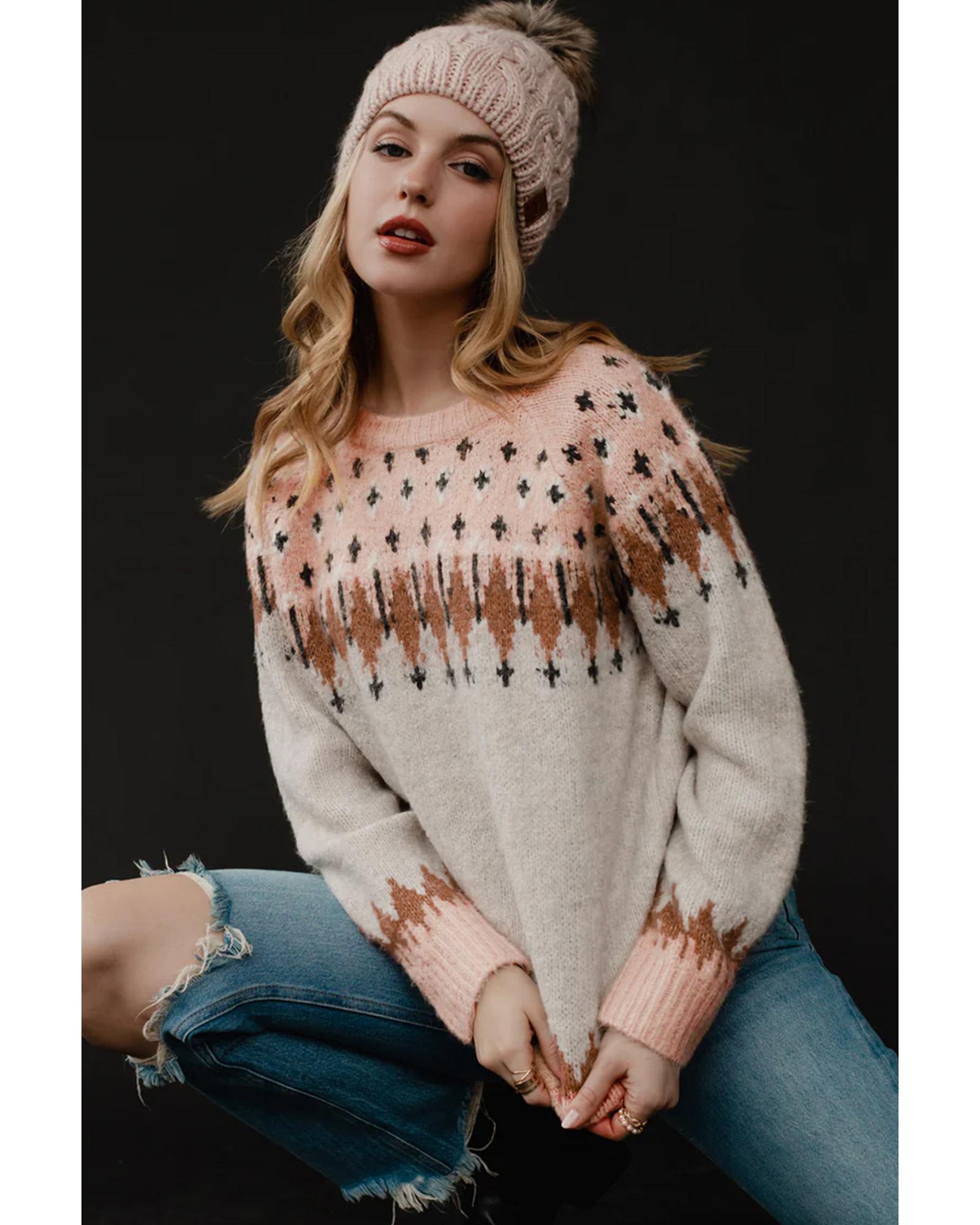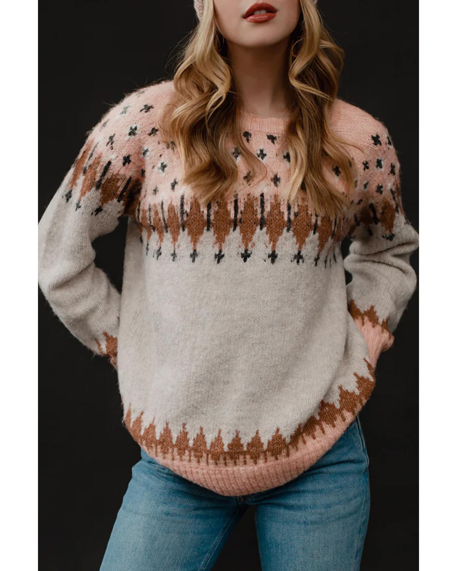 Light Pink Valentine�s Day Heart Jacquard Knit Sweater - XL