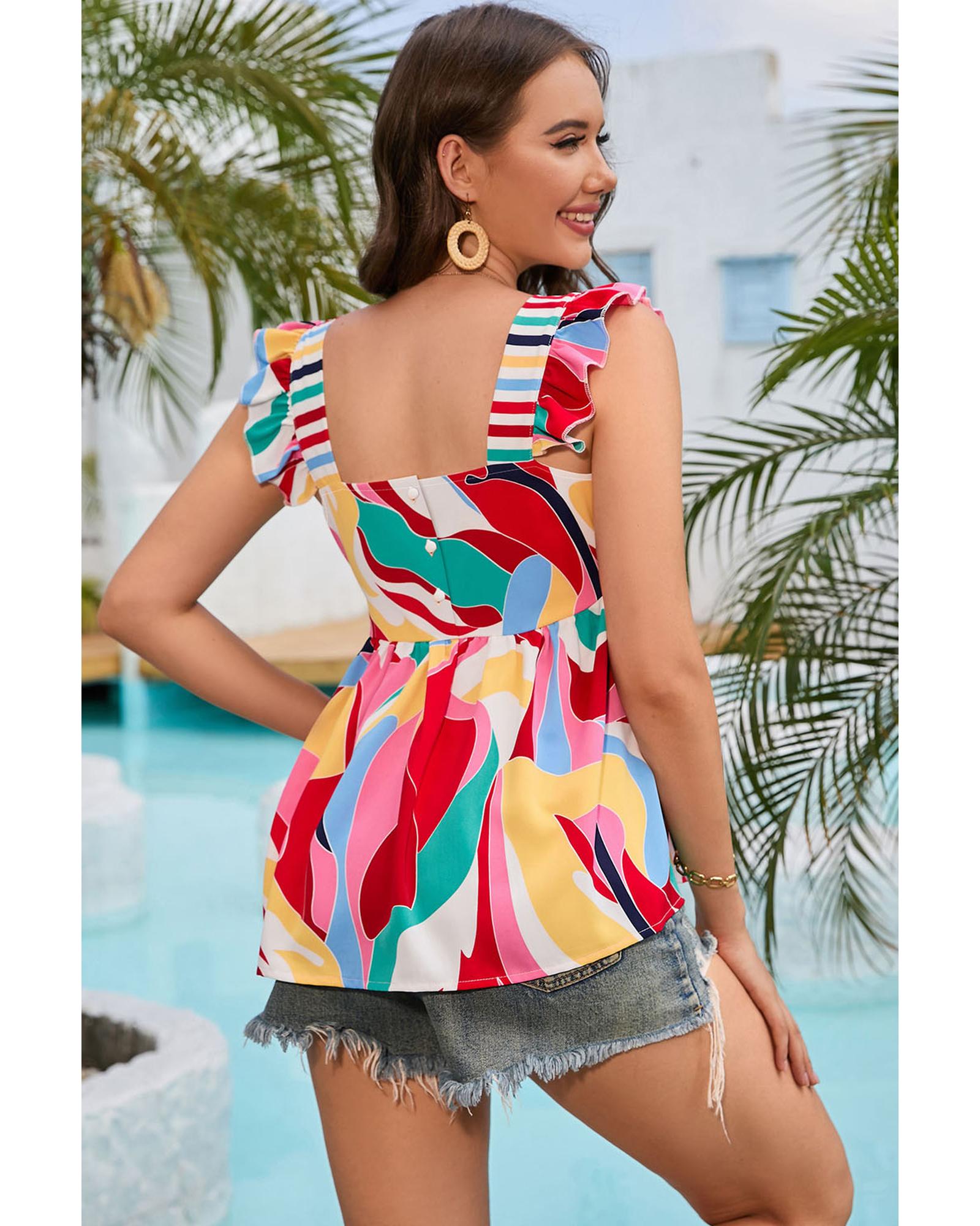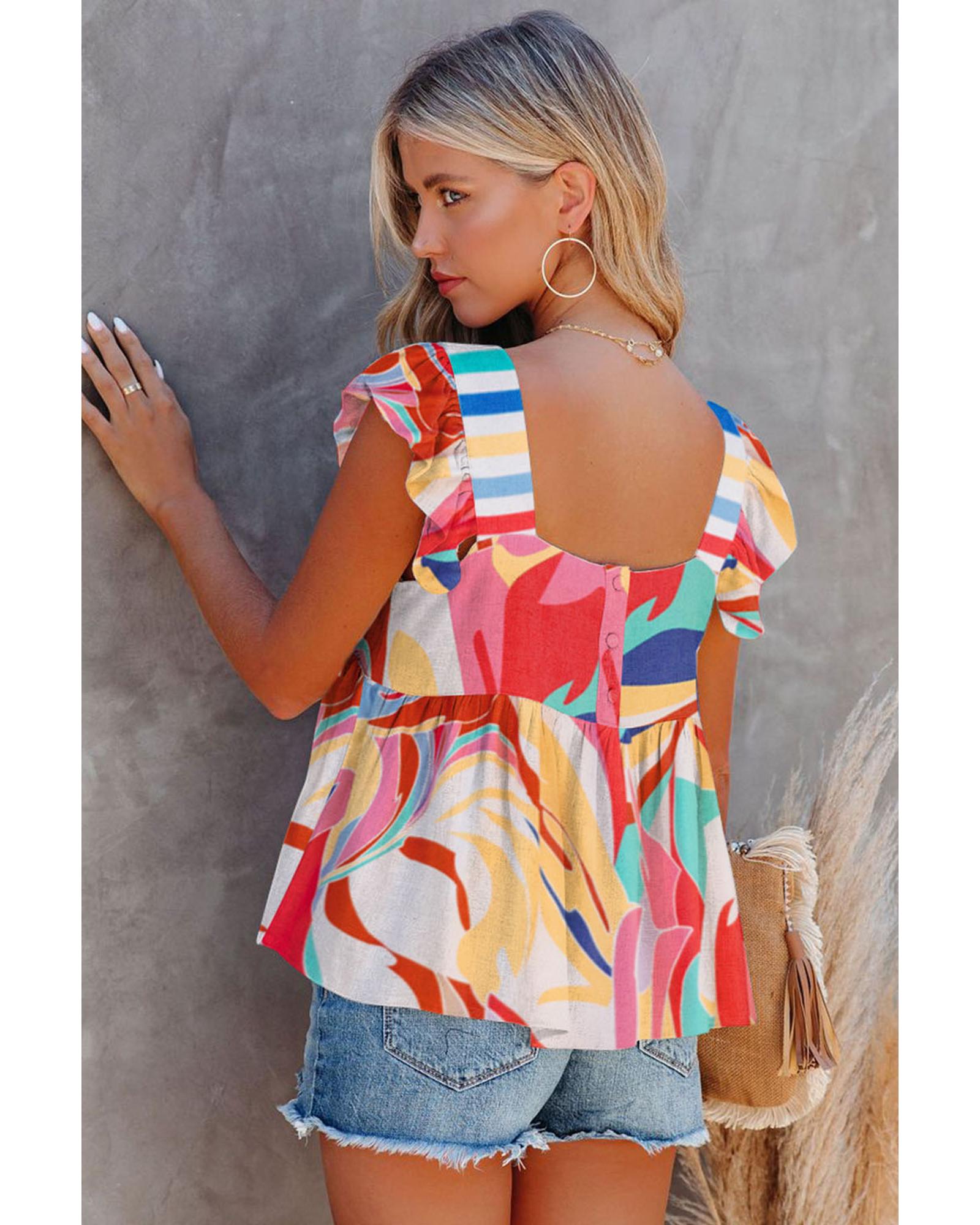 Dark Brown Contrast Trim Patchwork Leopard Print Half Sleeve Shirt - M