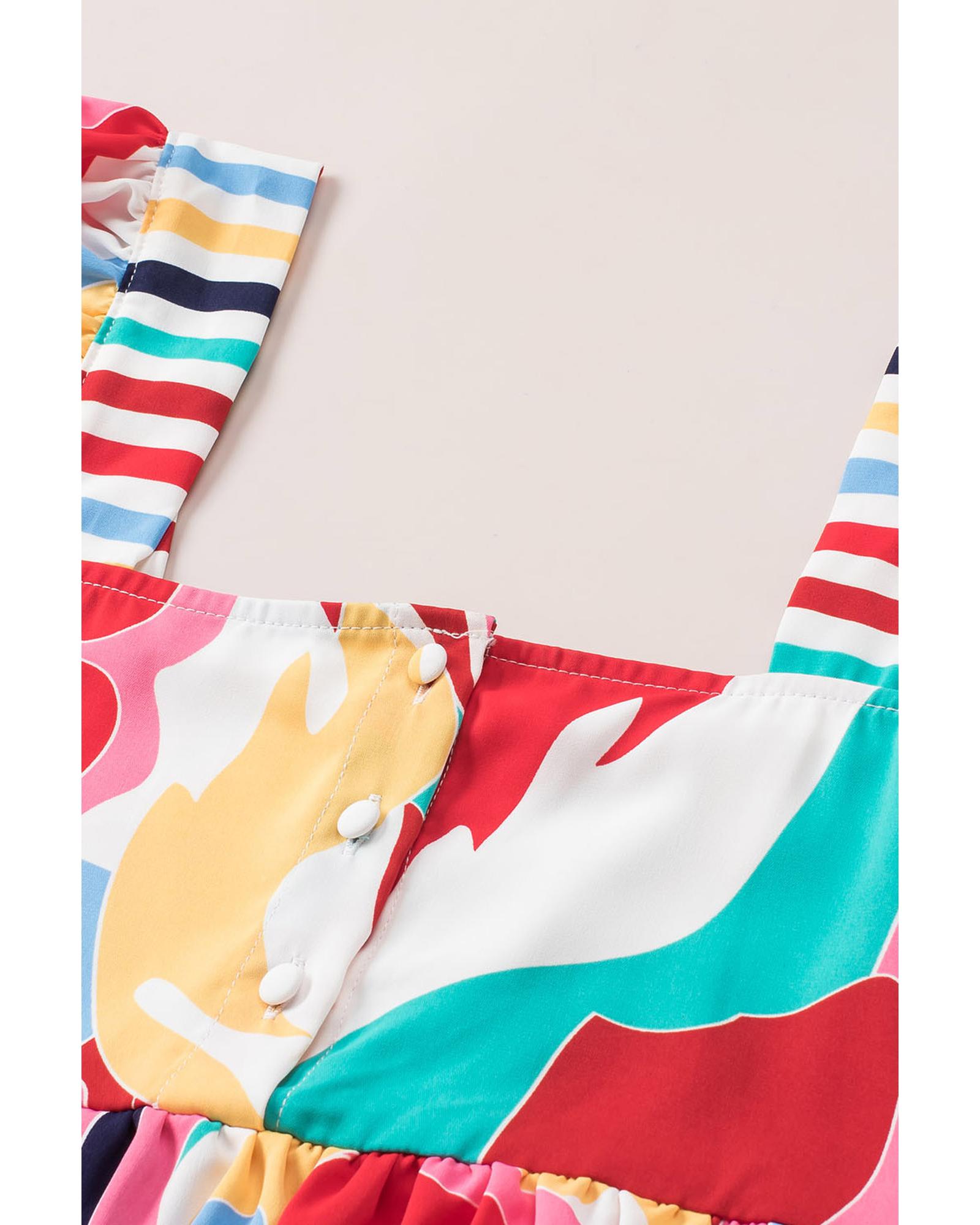 • Multicolor Square Neck Abstract Print Tank Top
