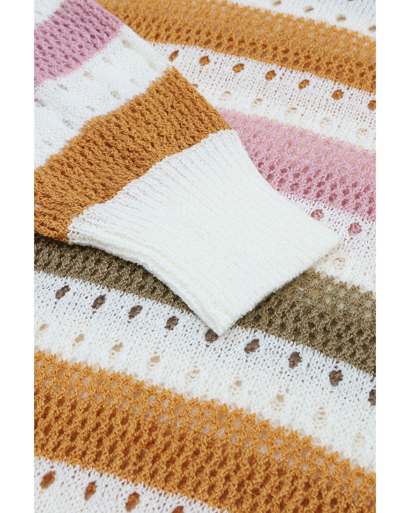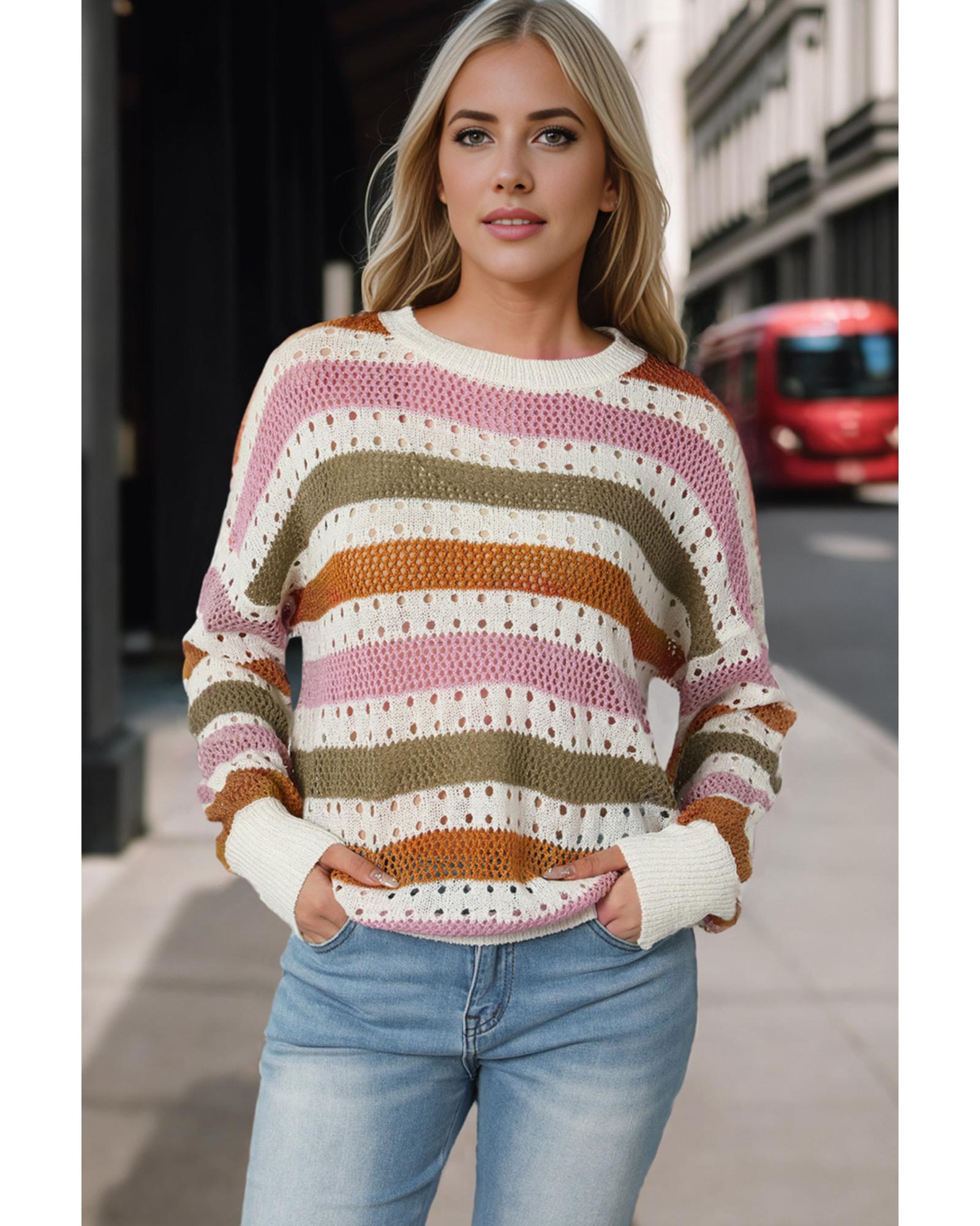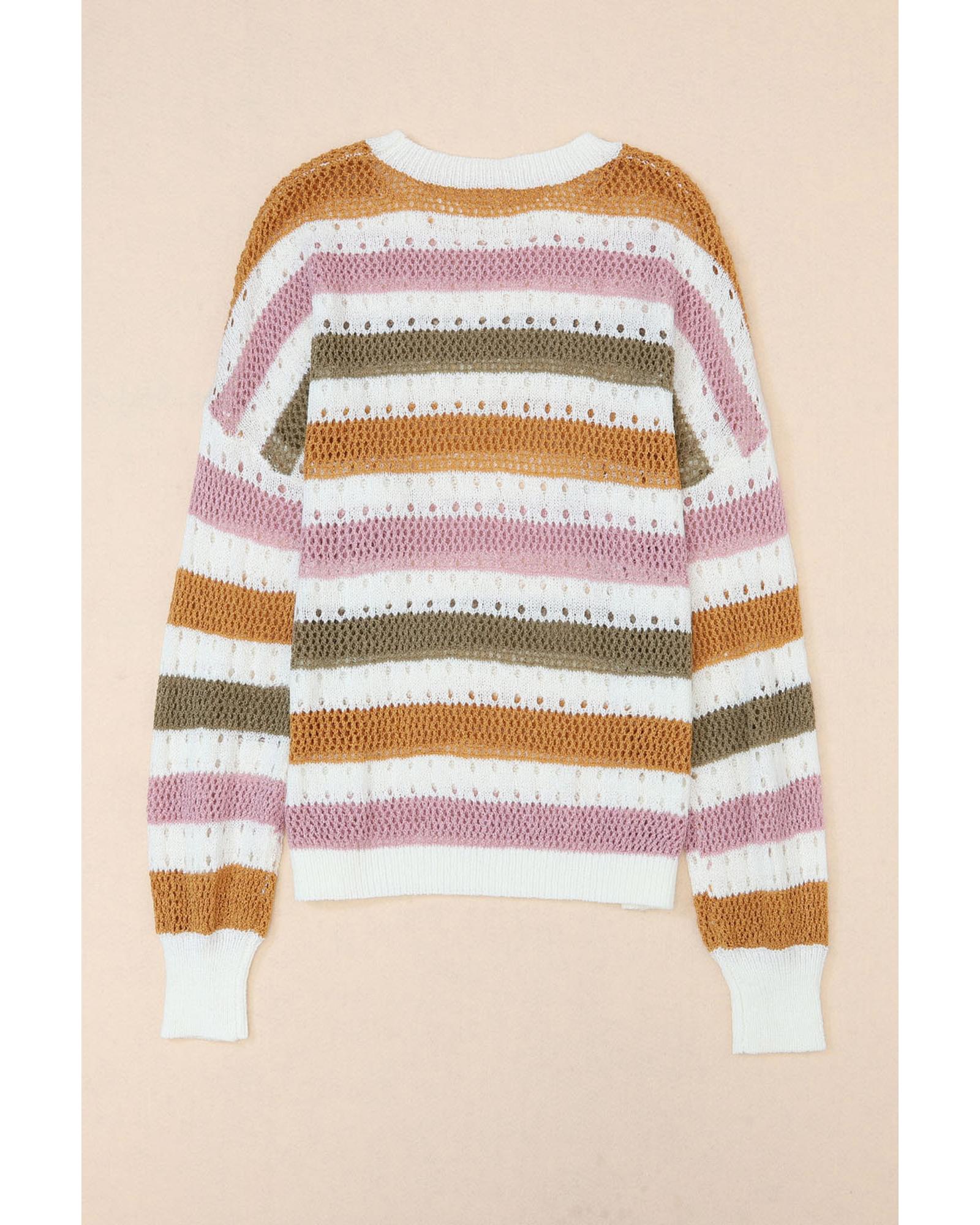Multicolor Striped Hollowed Knitted Loose Sweater – L