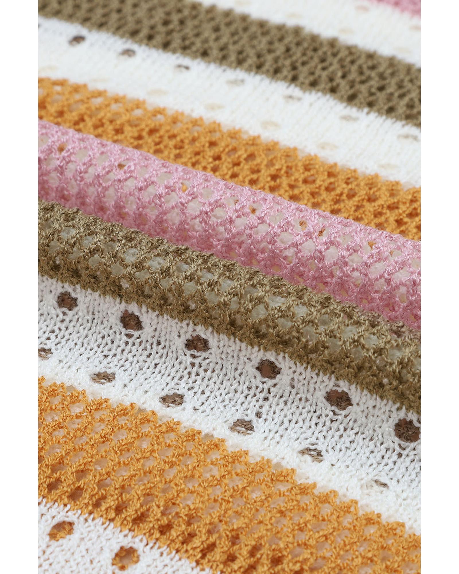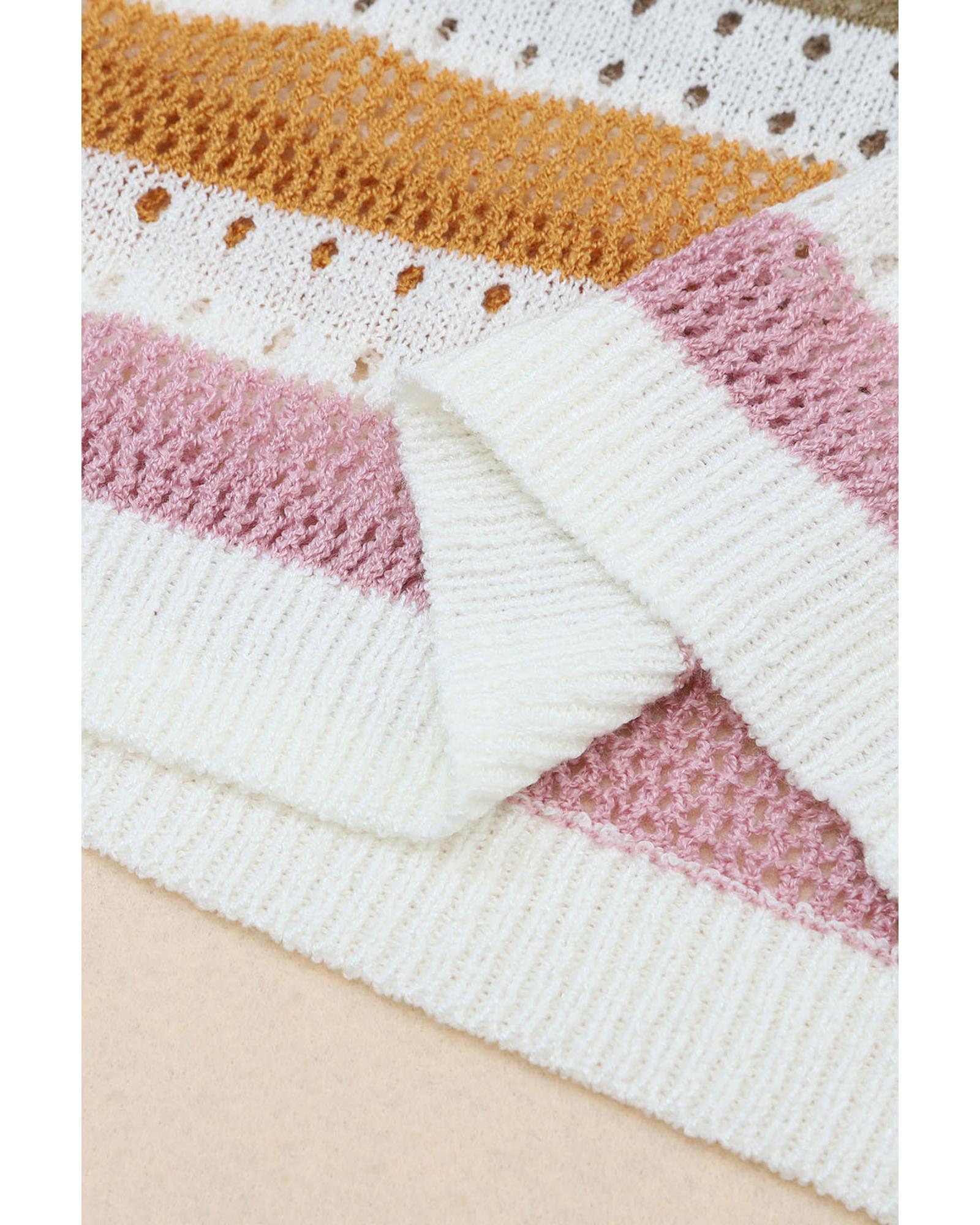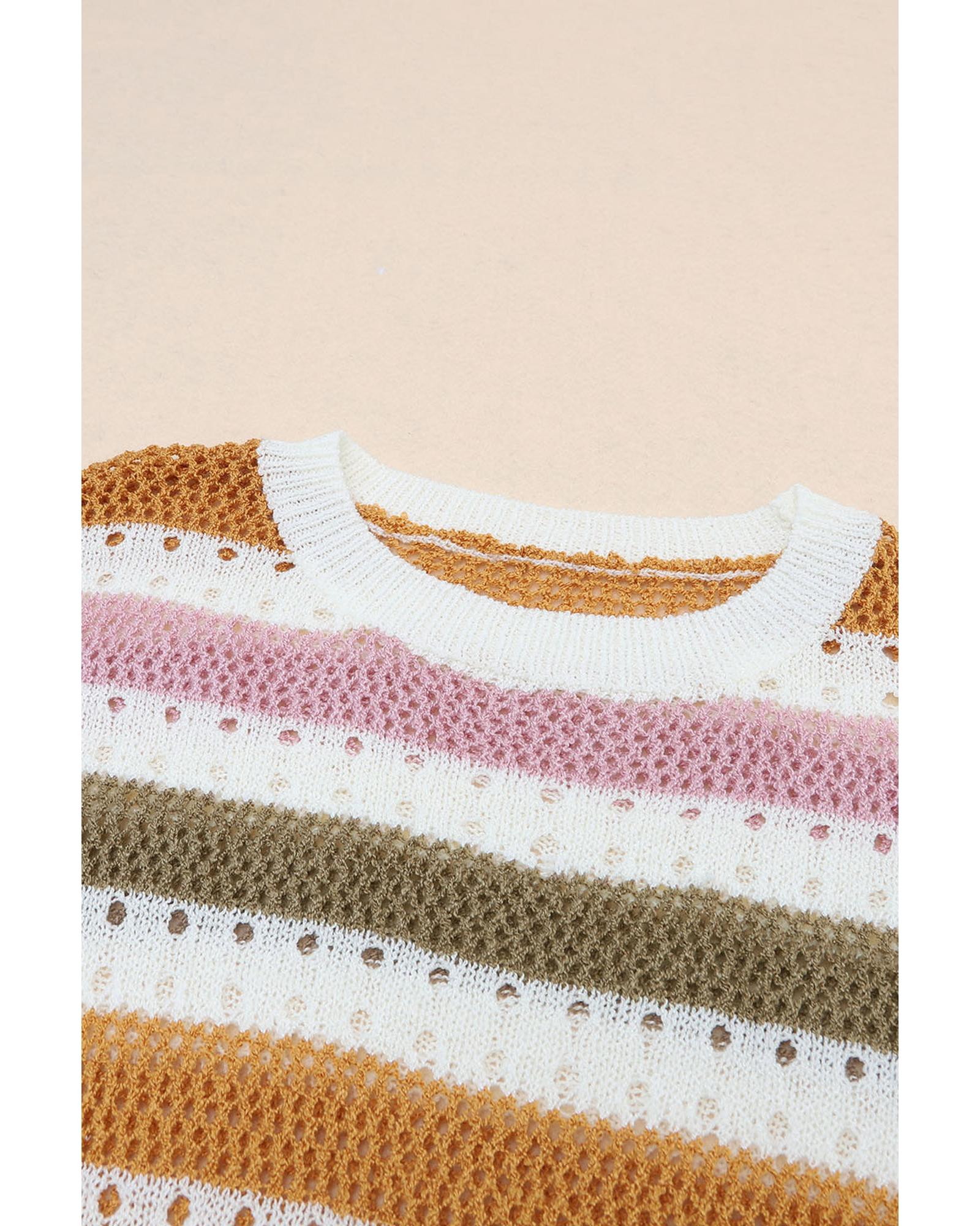 Multicolor Striped Hollowed Knitted Loose Sweater – L