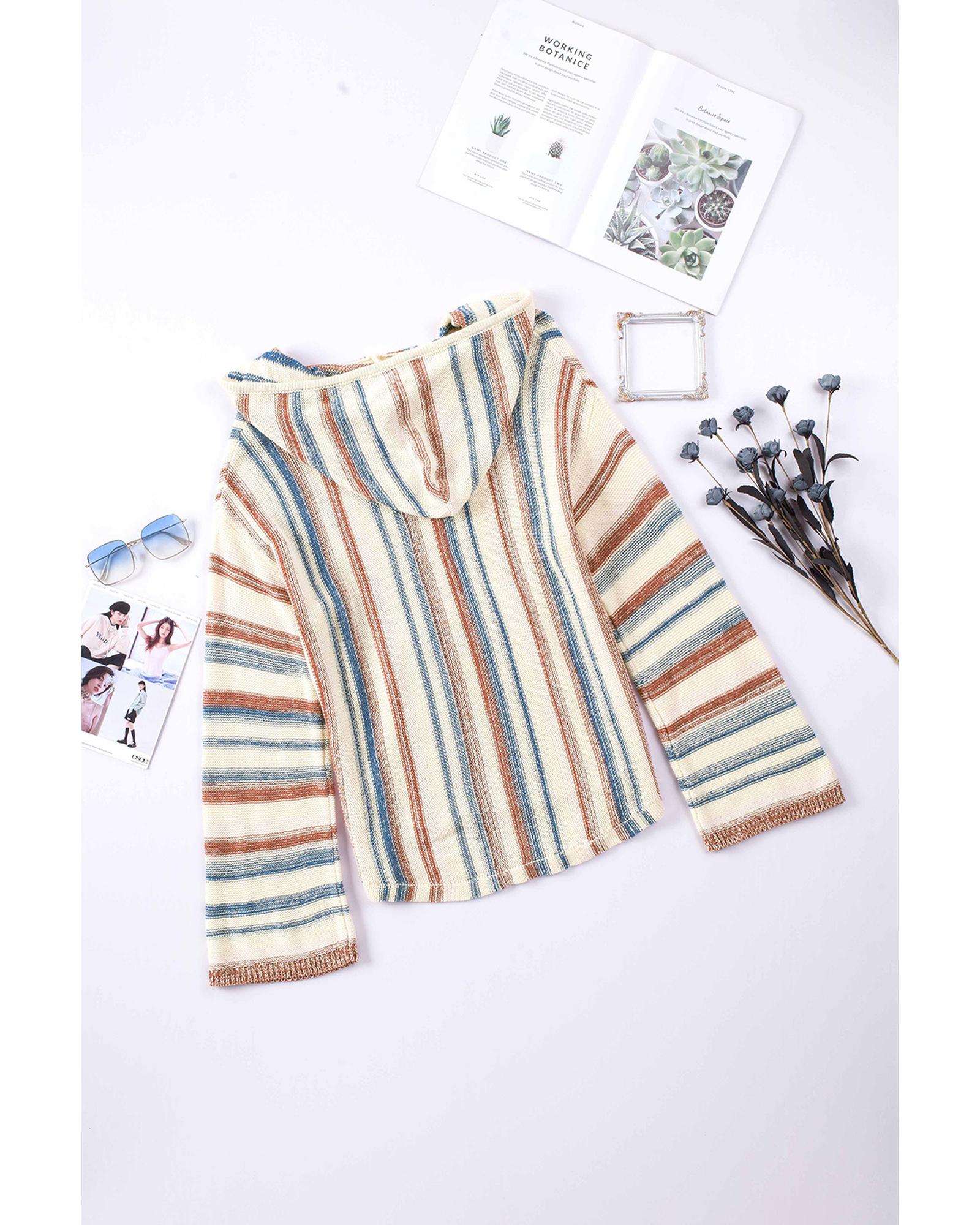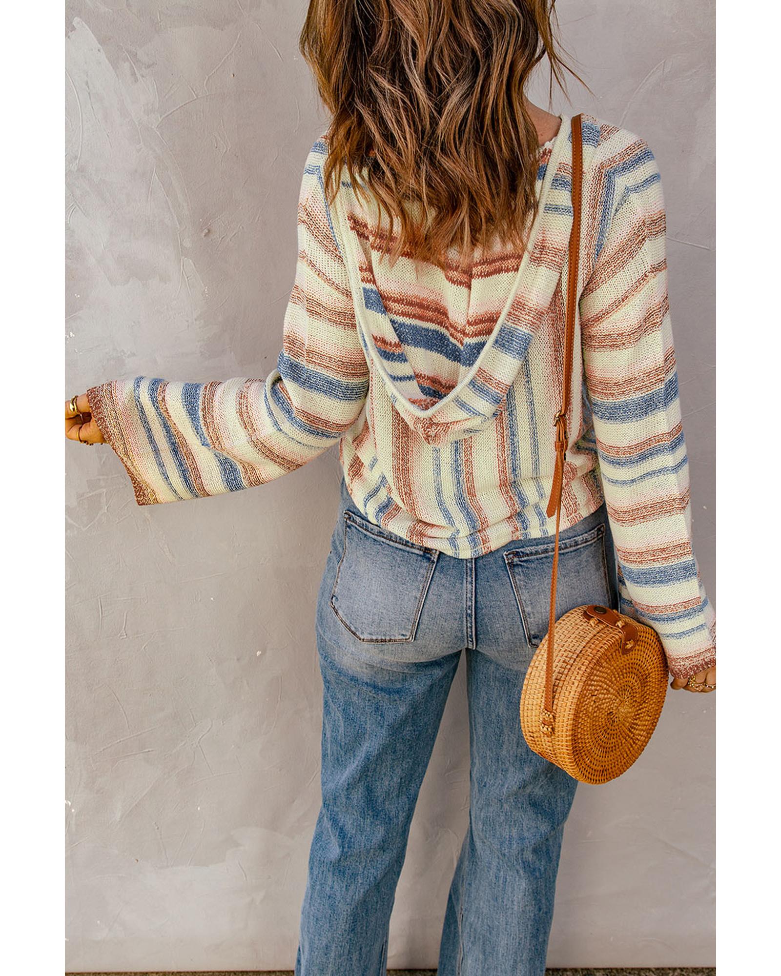 Multicolor Striped Knit Kangaroo Pocket Hooded Sweater – S