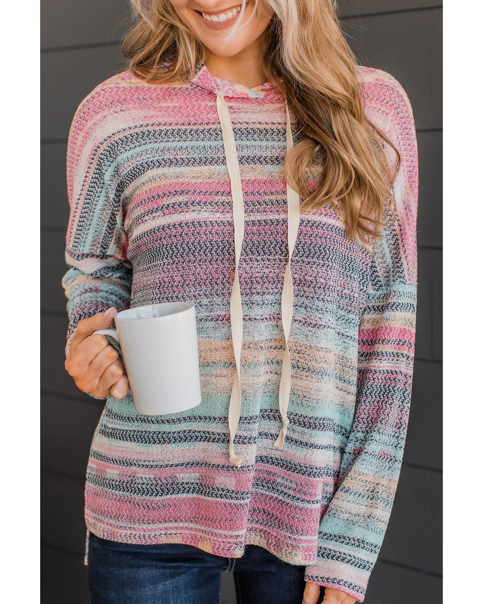 Multicolor Striped Print Cable Knit Drop Shoulder Hoodie – M