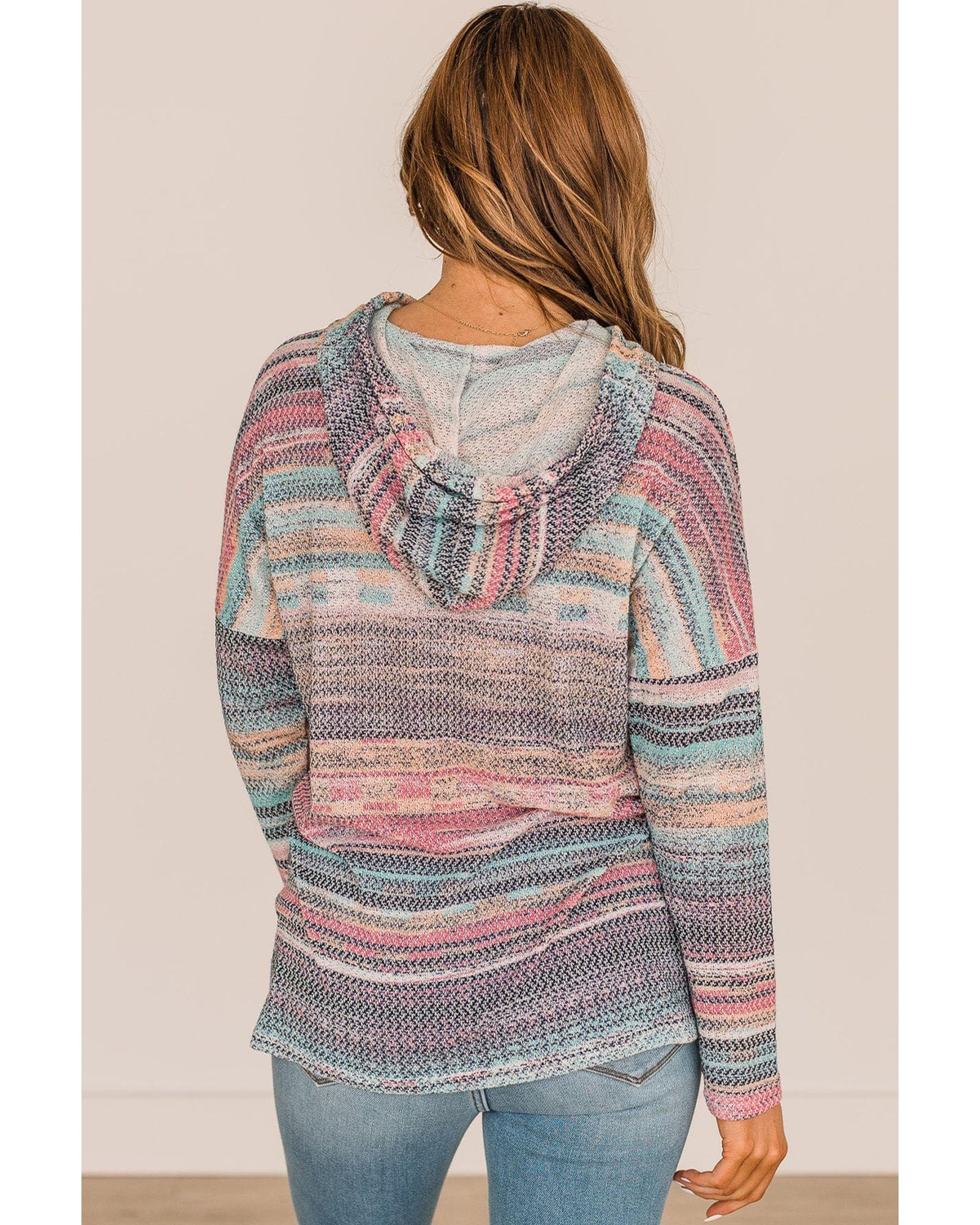 Multicolor Striped Print Cable Knit Drop Shoulder Hoodie – S