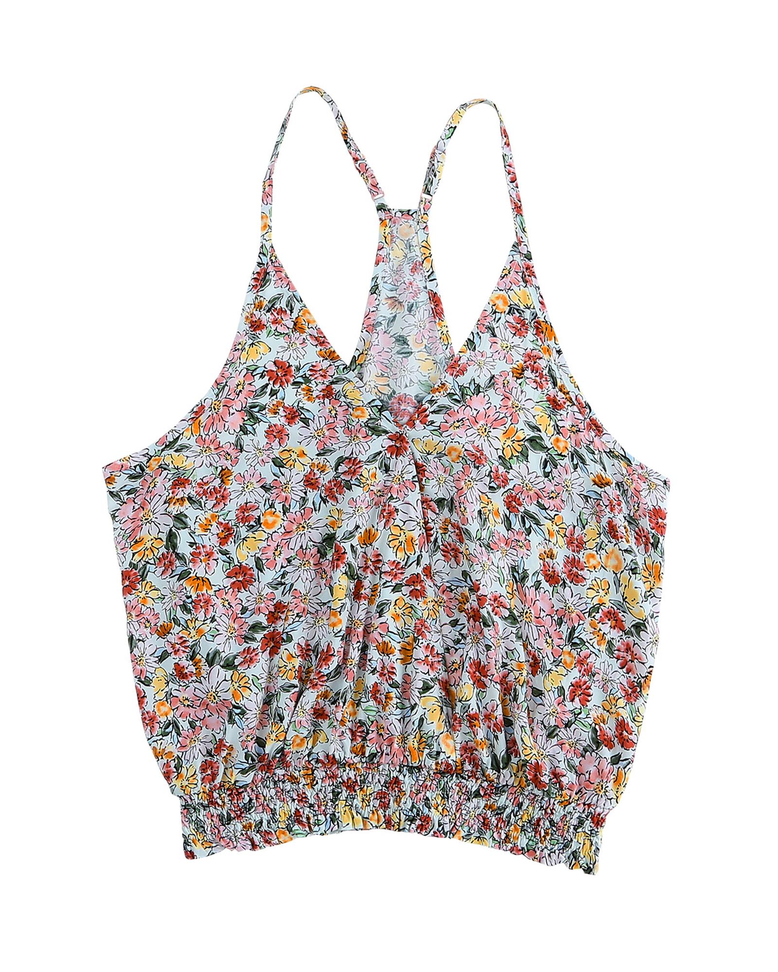 Multicolor Wrapped V Neck Floral Tank Crop Top – M