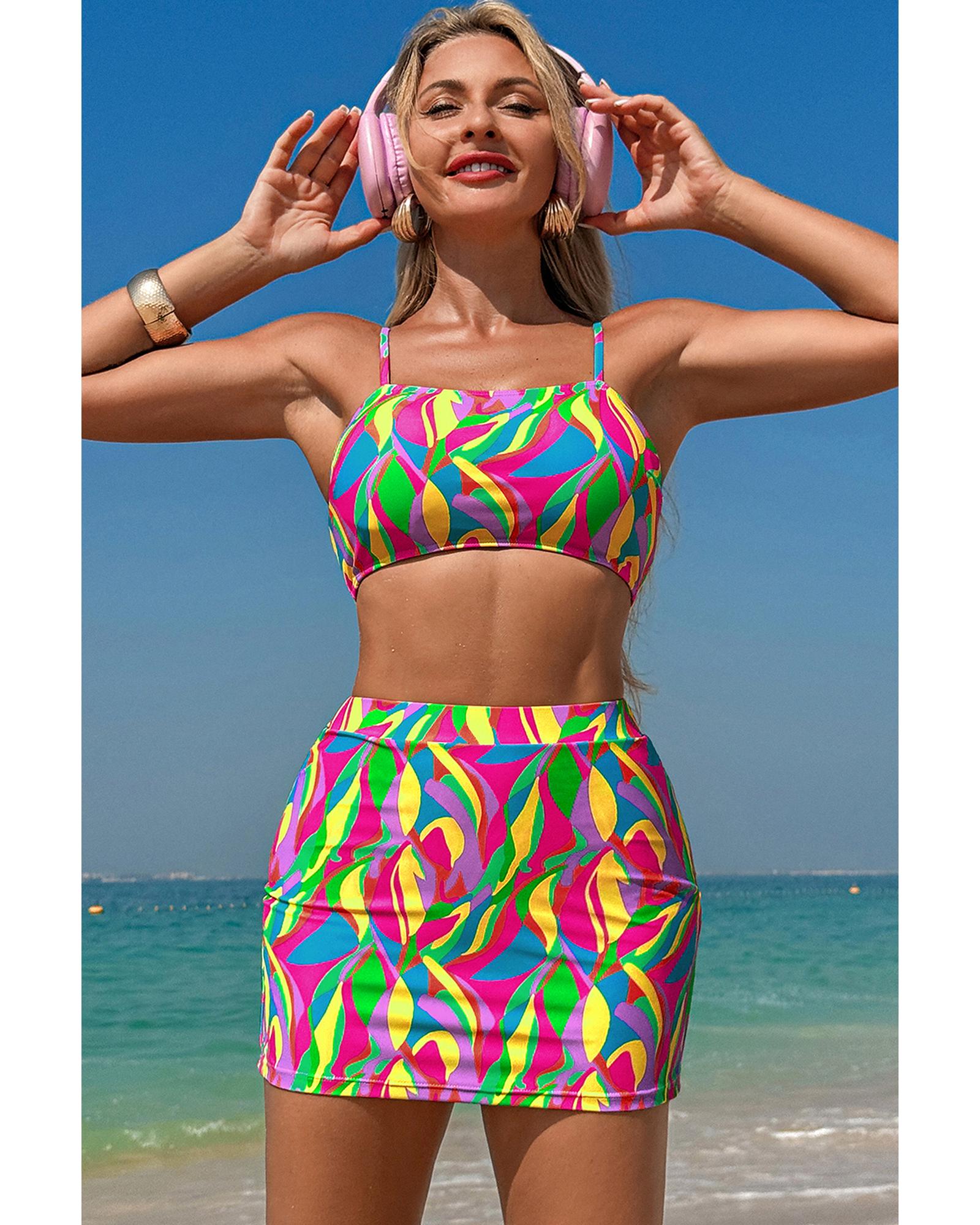 Square Neck Sleeveless Fashion Print Tankini Set - M