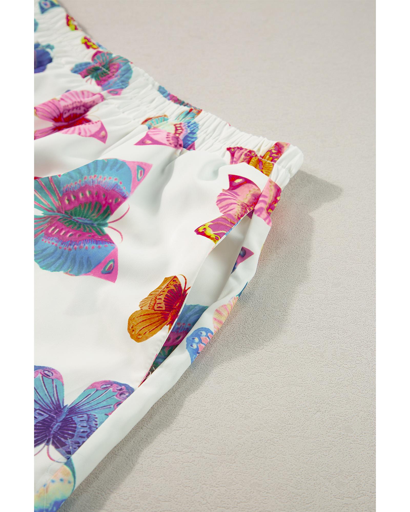 Multicolour Butterfly Pattern Short Sleeve Shirt Pajamas Set – L