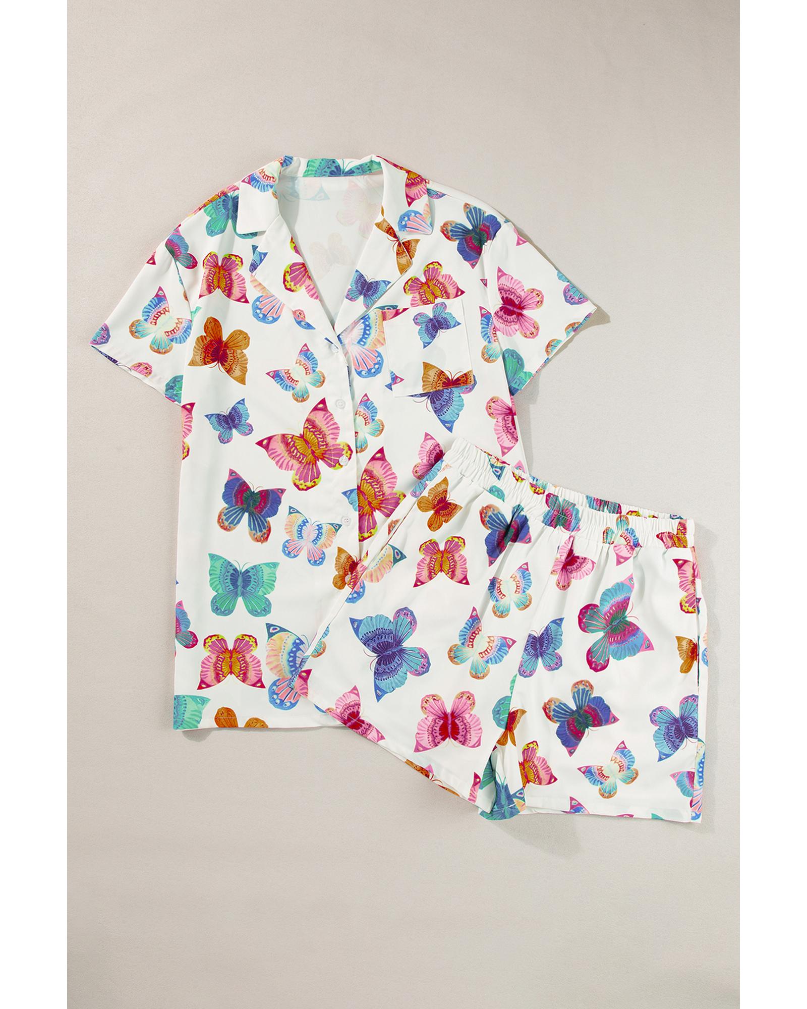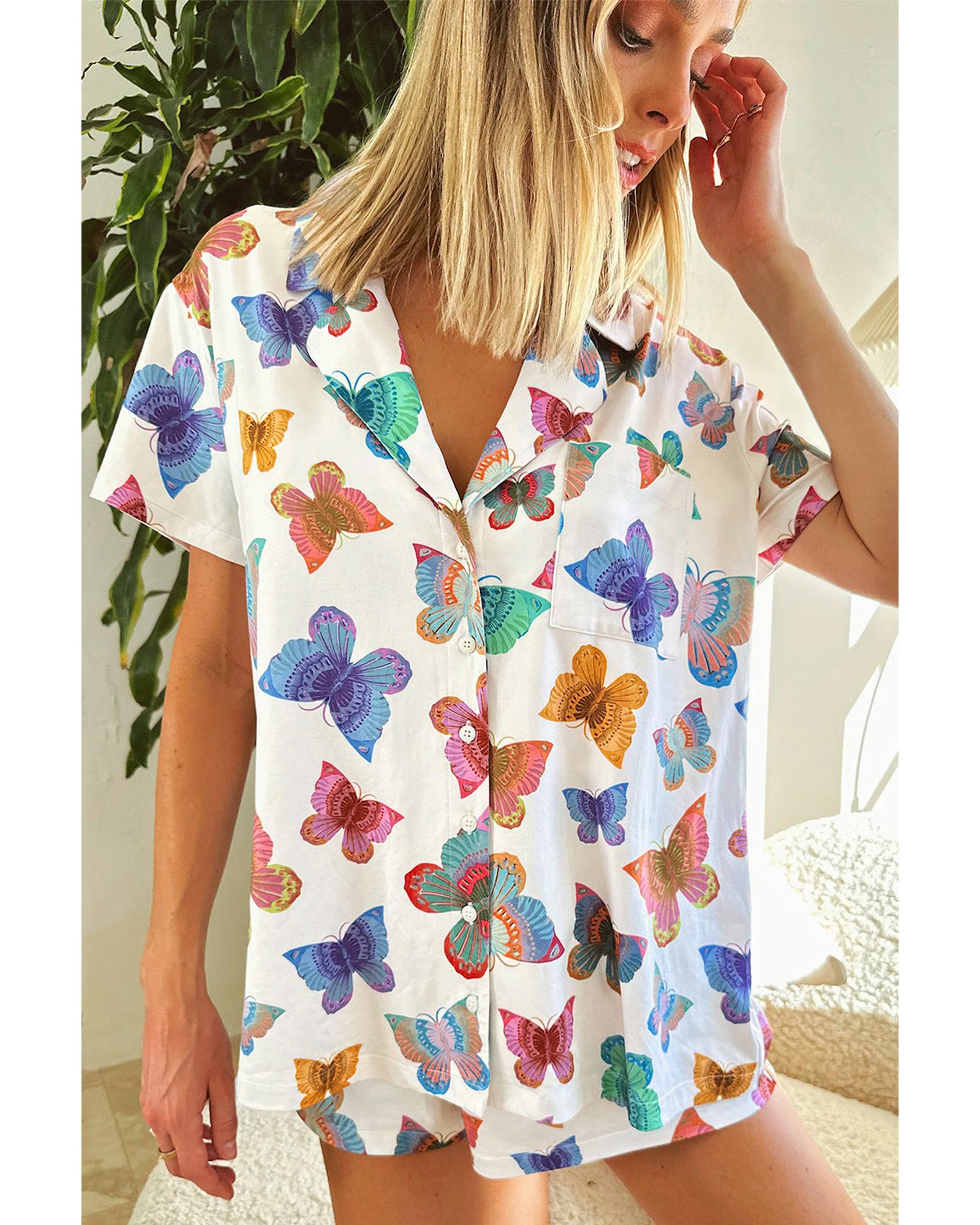 Multicolour Butterfly Pattern Short Sleeve Shirt Pajamas Set – M