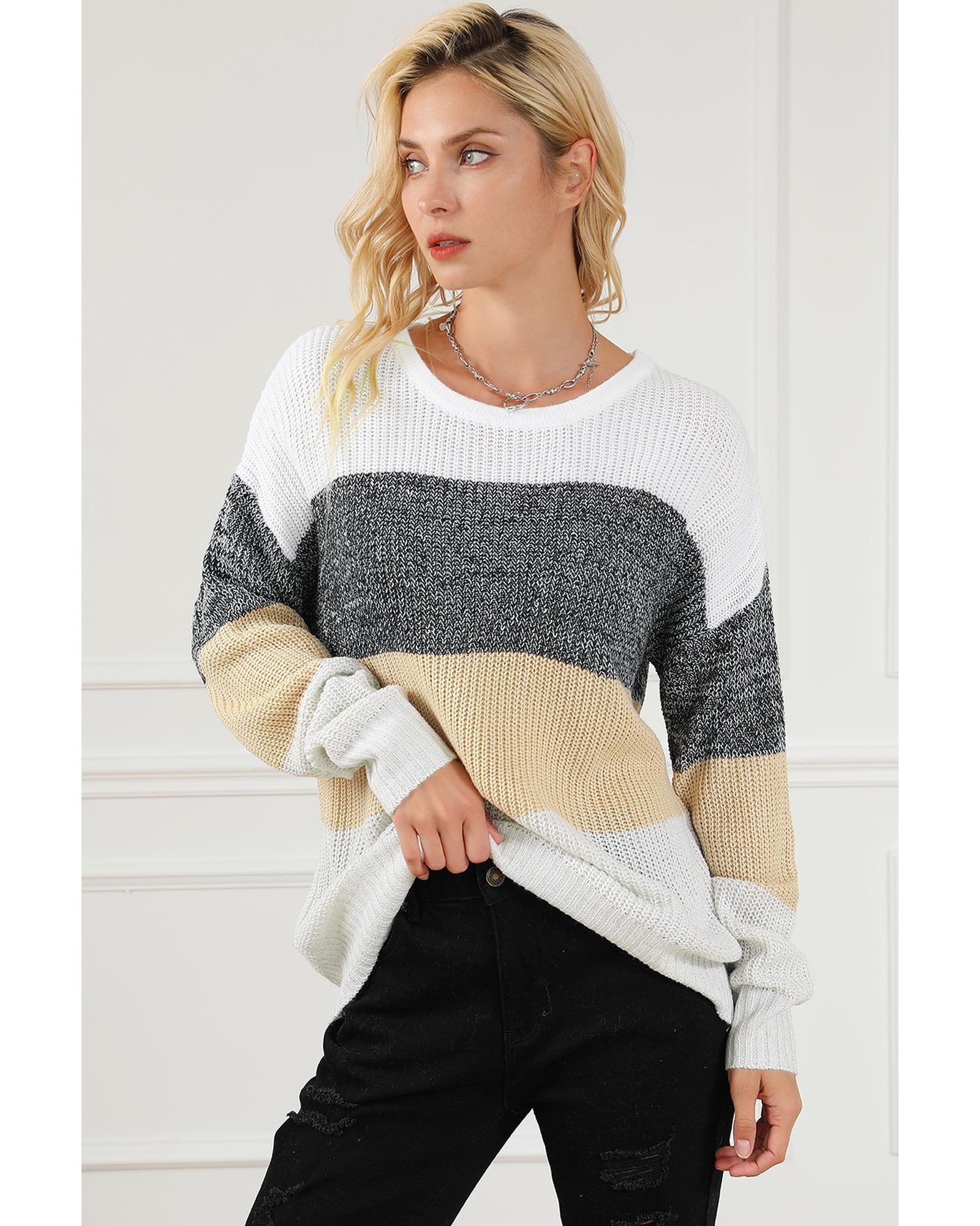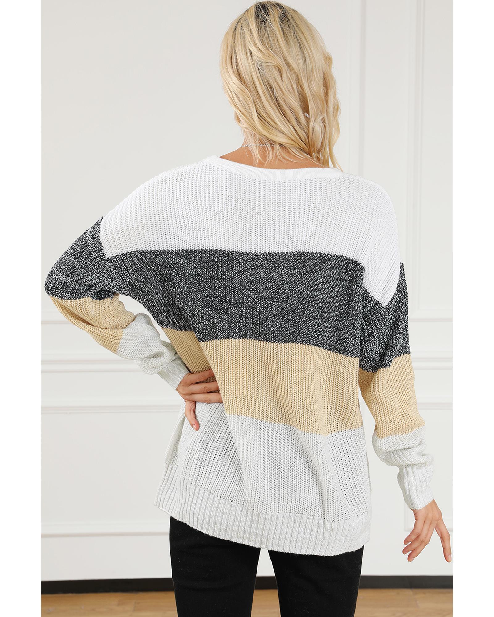 Multicolour Color Block Drop Shoulder Knit Sweater – L