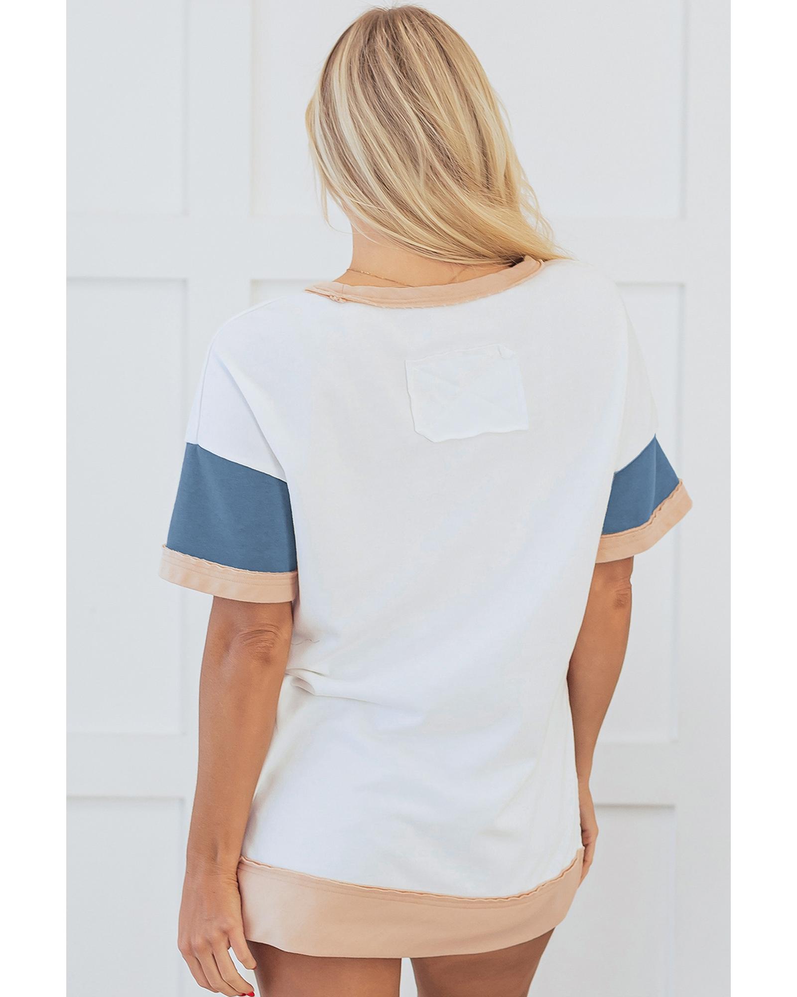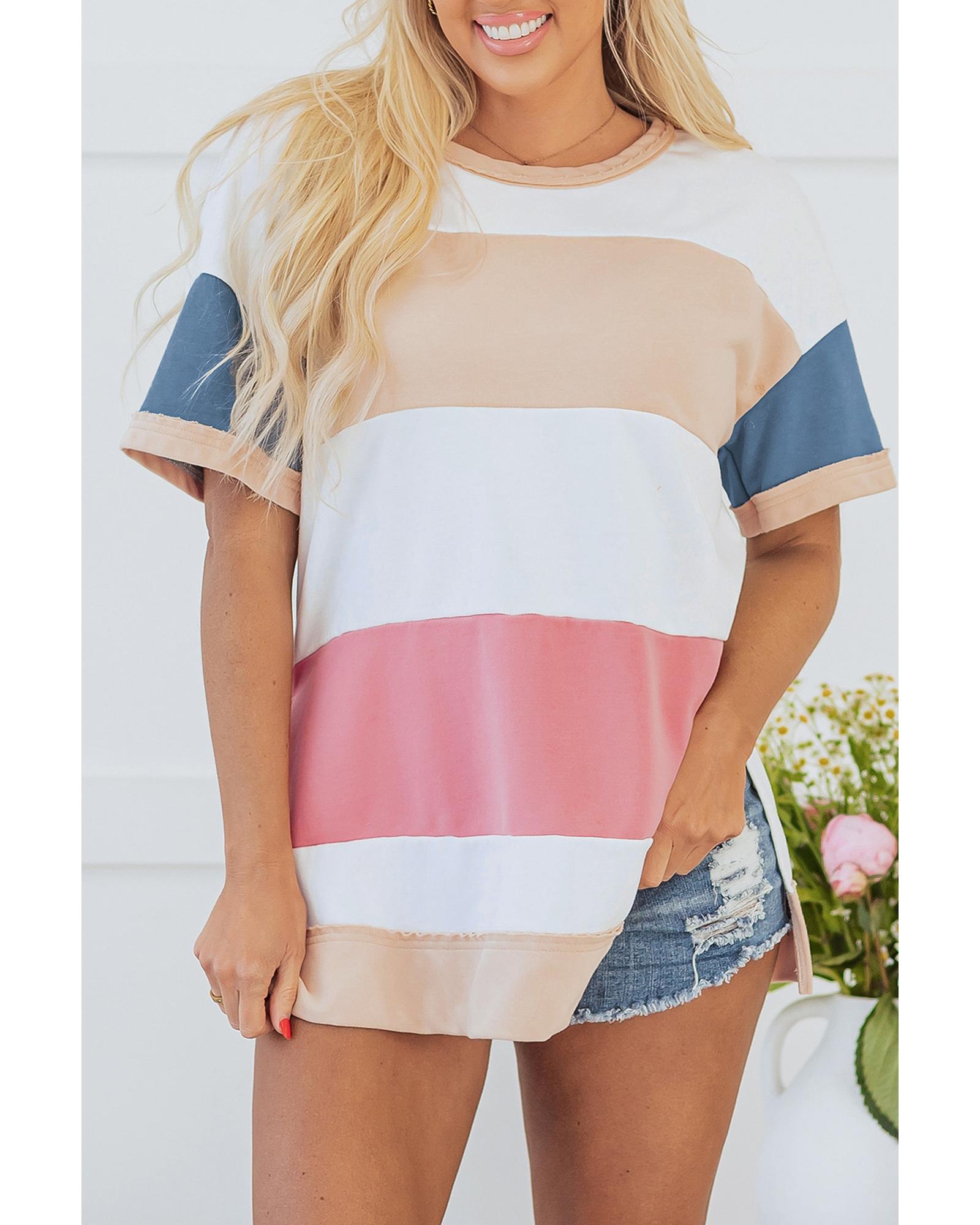 Multicolour Colorblock Patchwork Side Split Tunic T Shirt – L