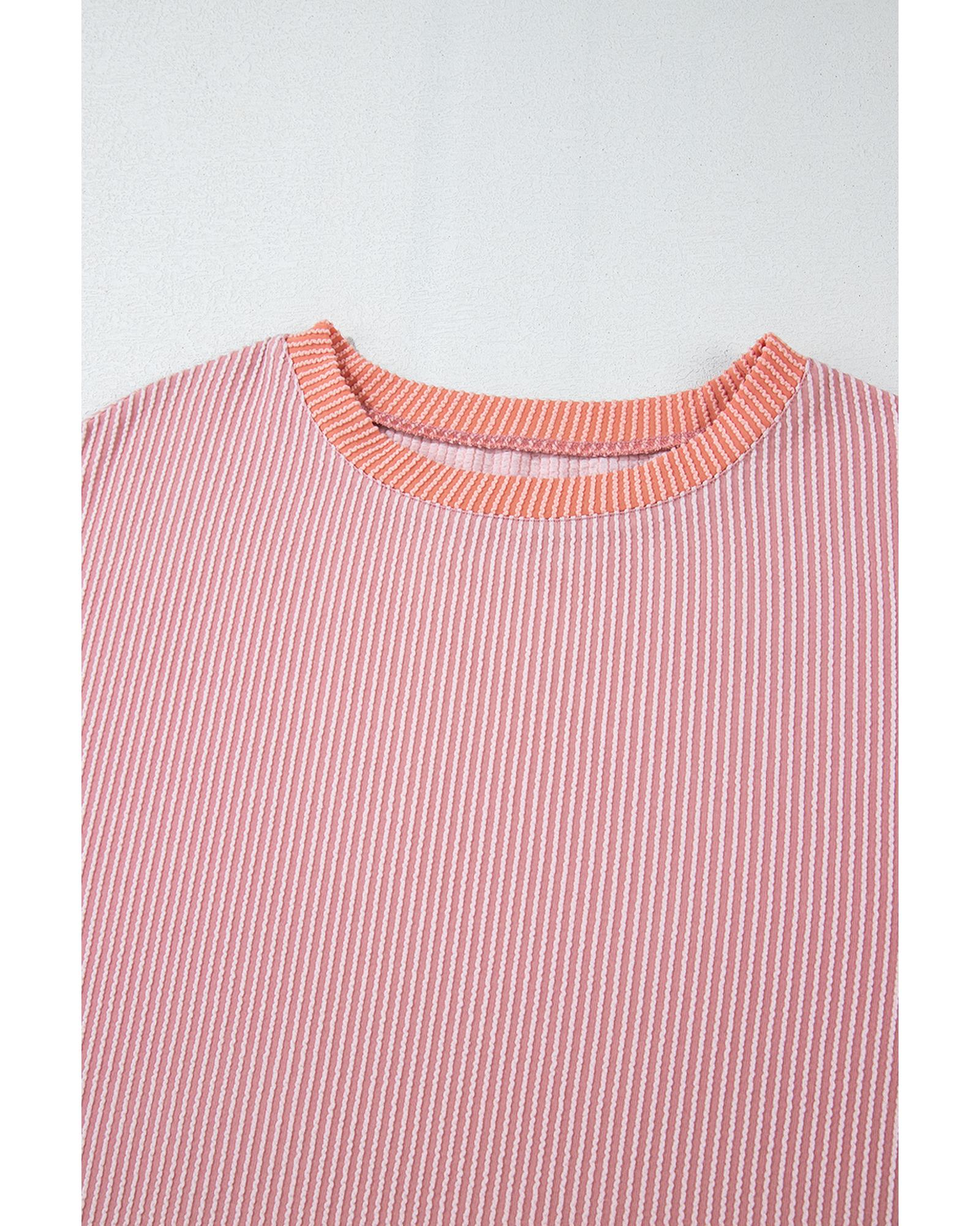Rose Red Waffle Knit Side Slits Loose Fit V Neck Top - S