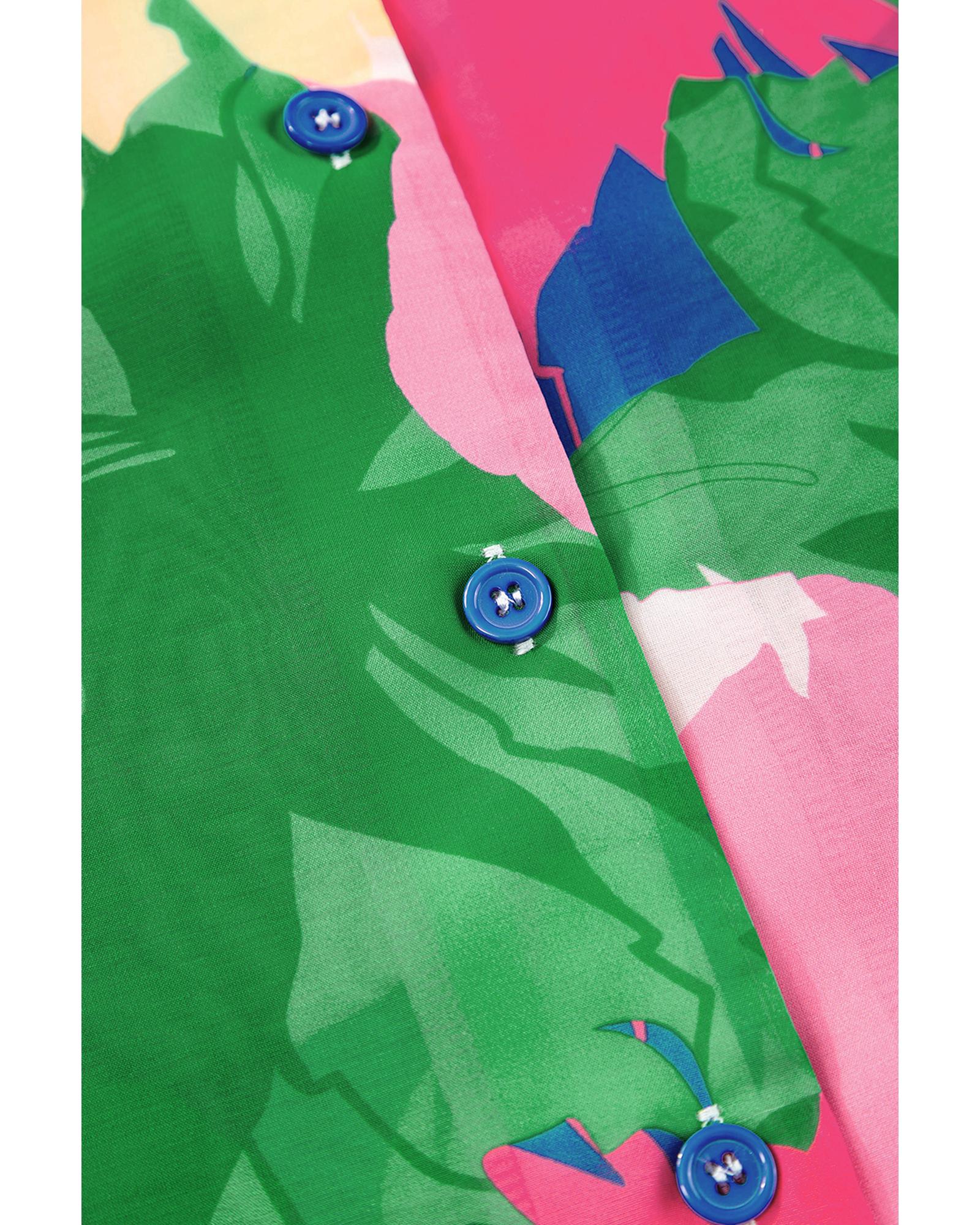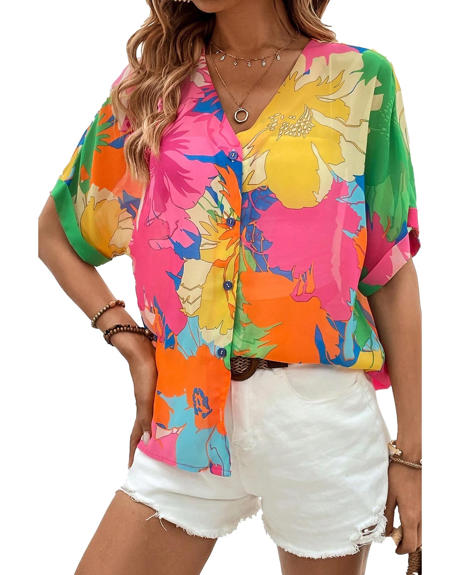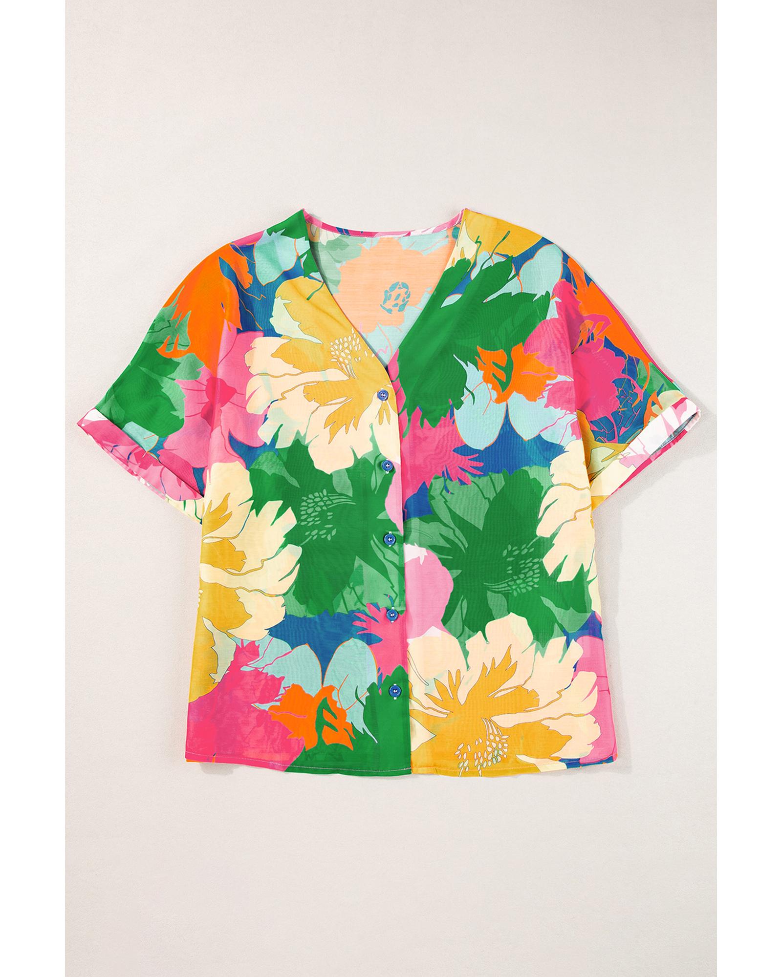Multicolour Floral Print Folded Short Sleeve Shirt – M