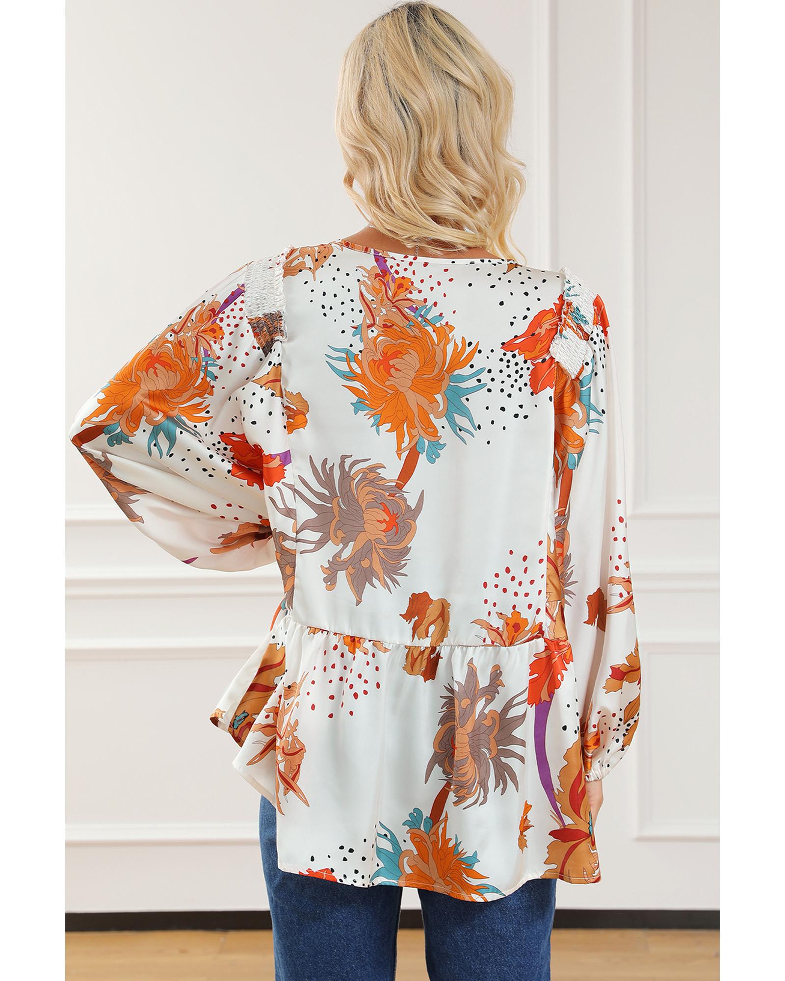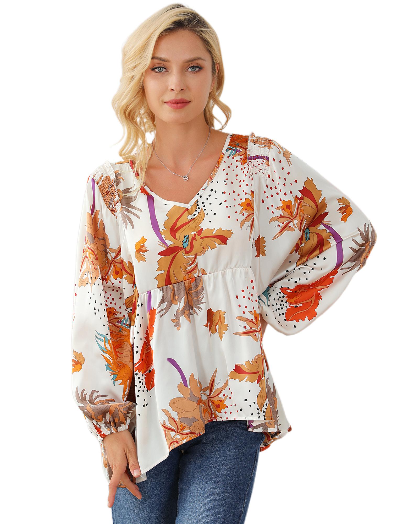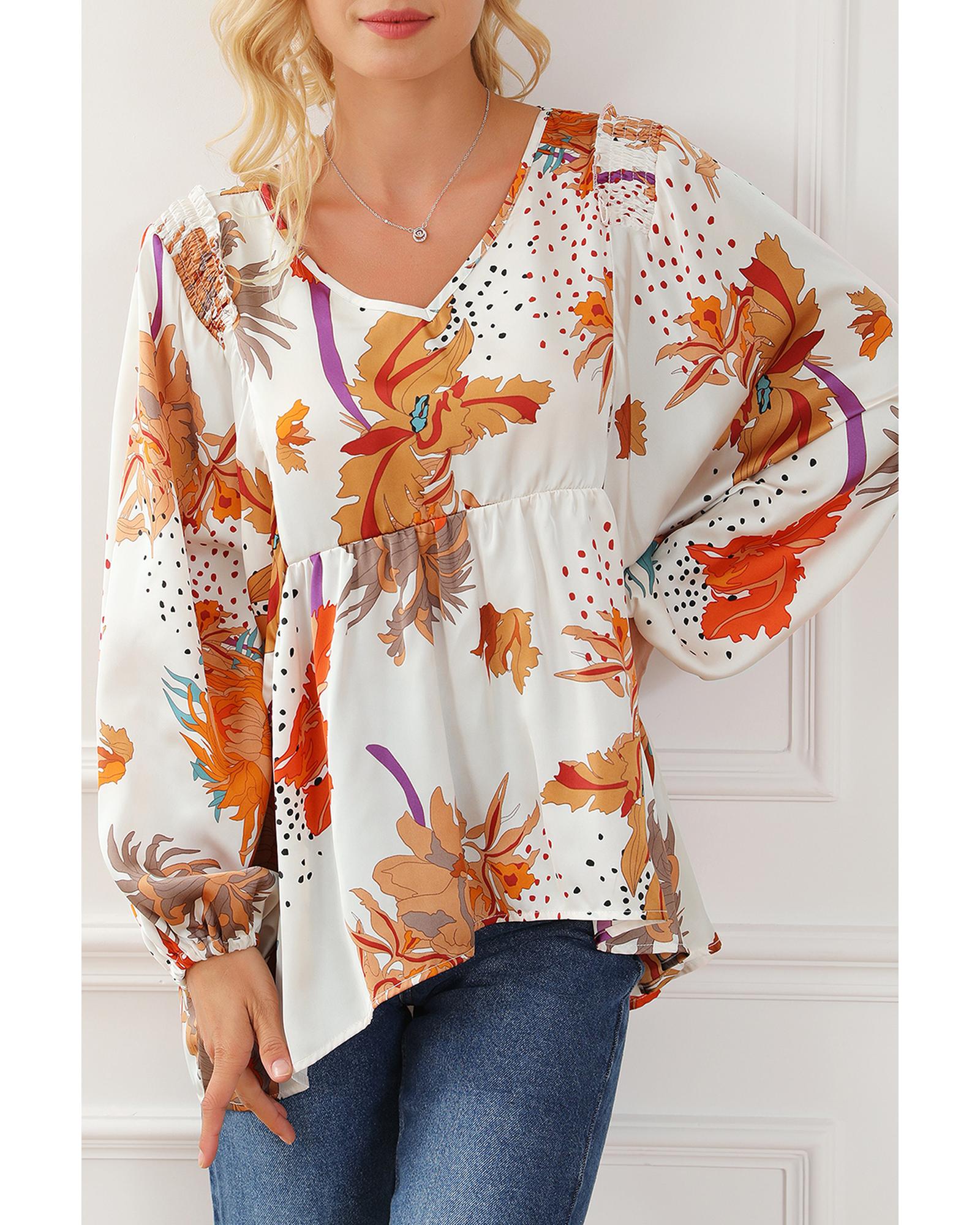 Multicolour Floral Print V Neck Babydoll Blouse – XL