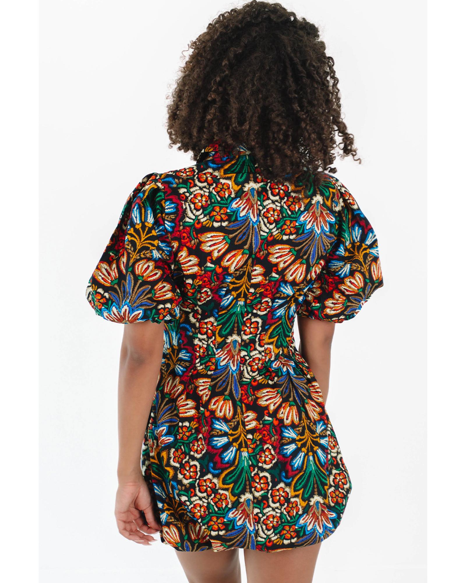 Multicolour Floral Puff Short Sleeve Shirt Mini Dress – M