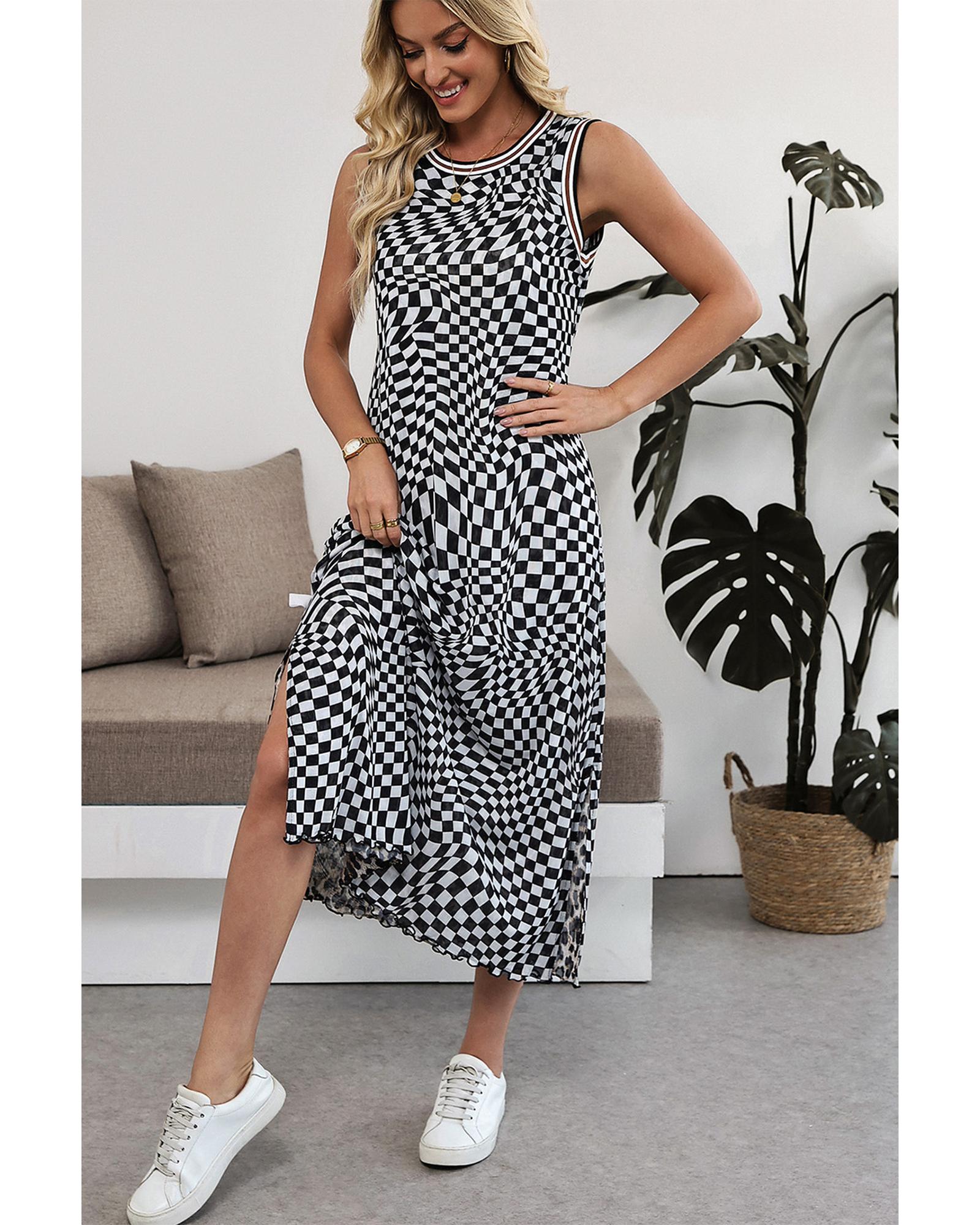 Multicolour Leopard Checkered Double Printed Reversible Sleeveless Long Dress – M
