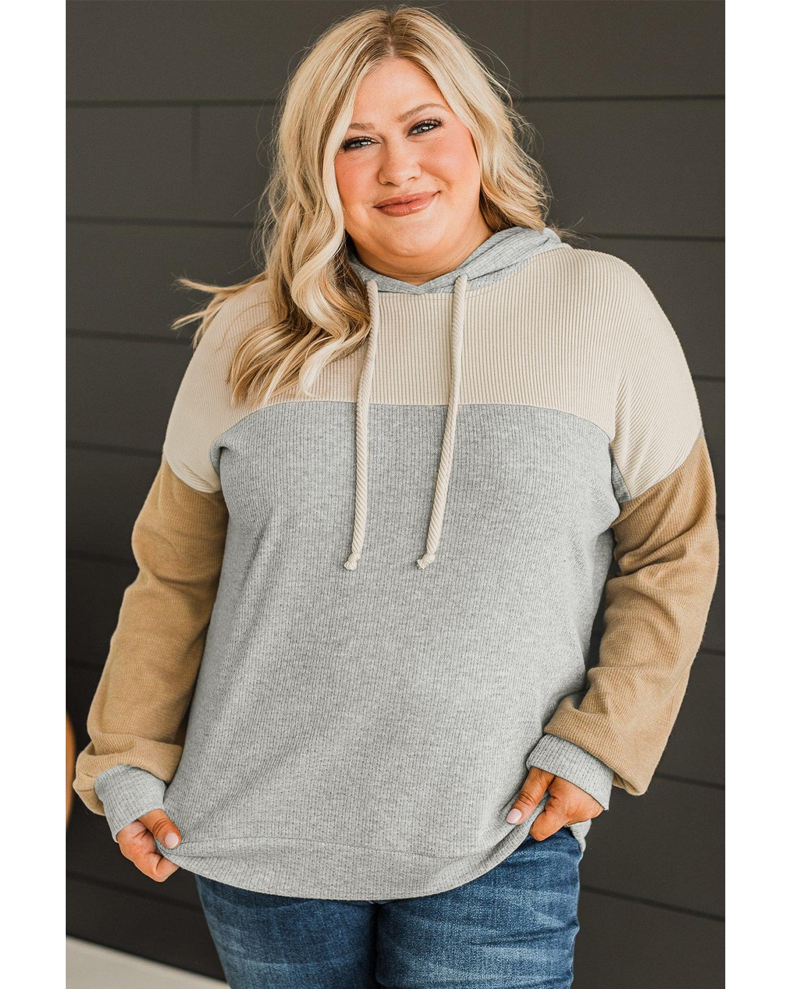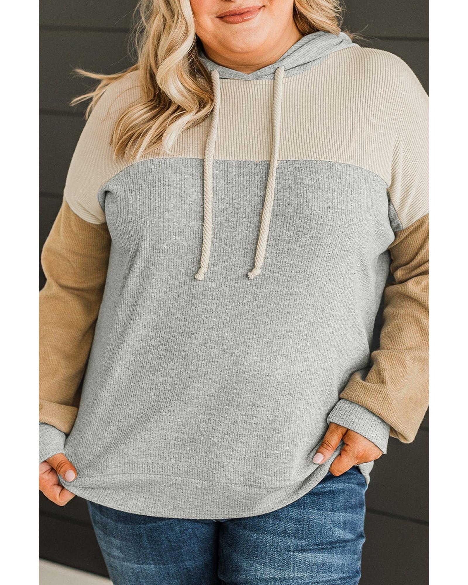 Multicolour Plus Size Colorblock Drop Shoulder Ribbed Knit Hoodie – 2X