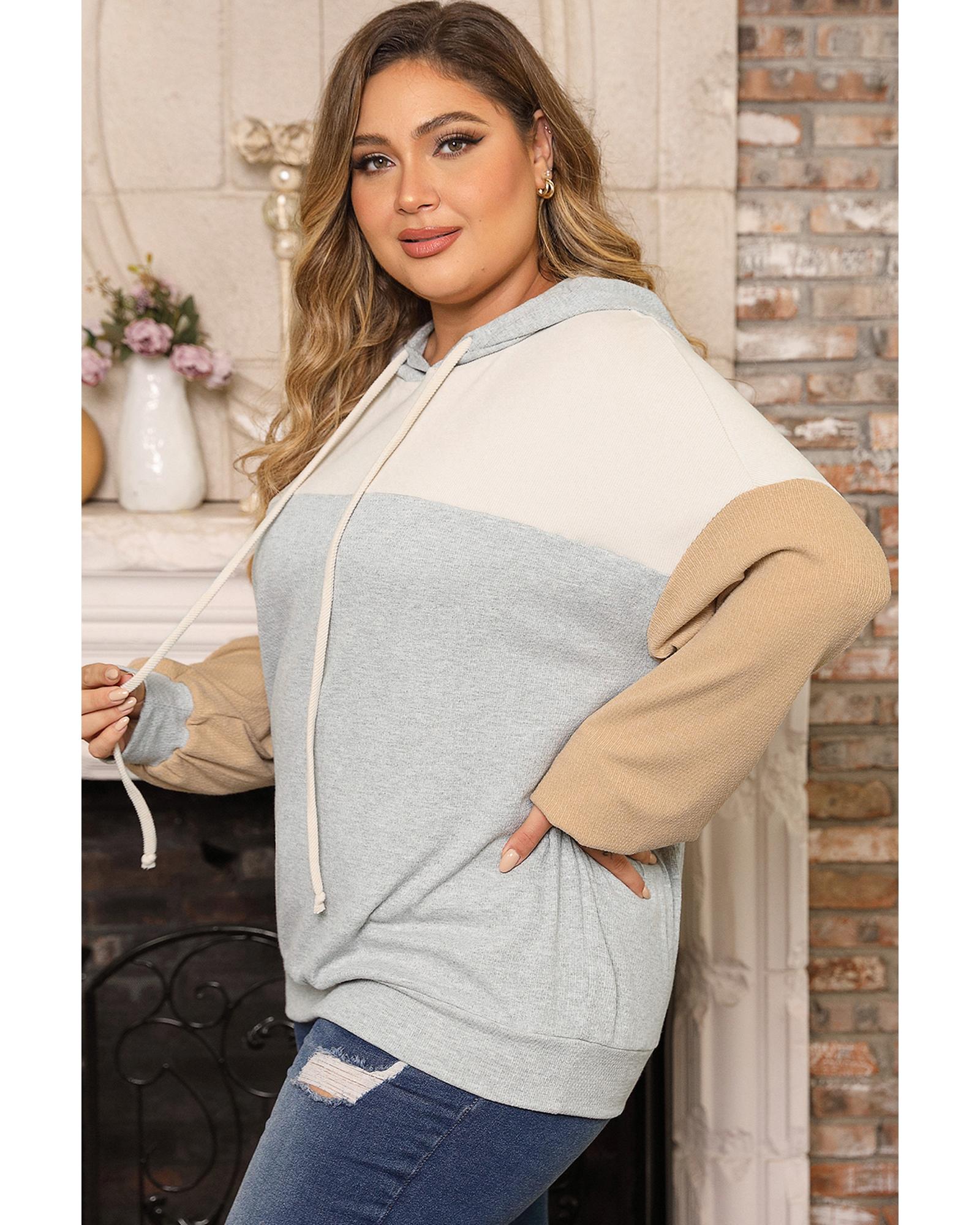 Soft knit material for comfort Color block style for a trendy look Pullover design with drawstring hood Drop shoulder balloon sleeves for added chic Available in plus sizes Refer to size chart for accurate measurements Ideal for women who appreciate luxury and style