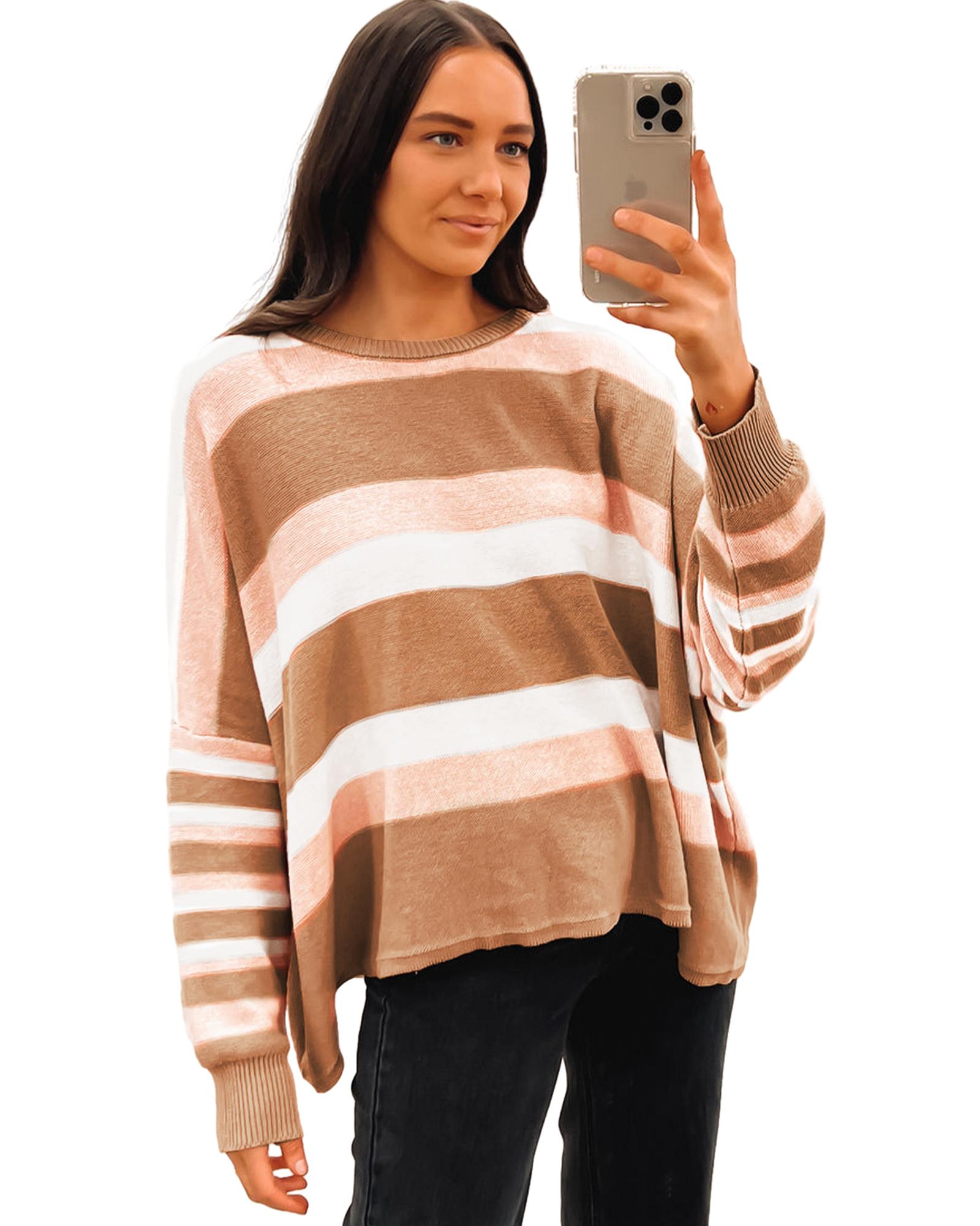 Multicolour Striped Knit Drop Shoulder Loose Sweater – L