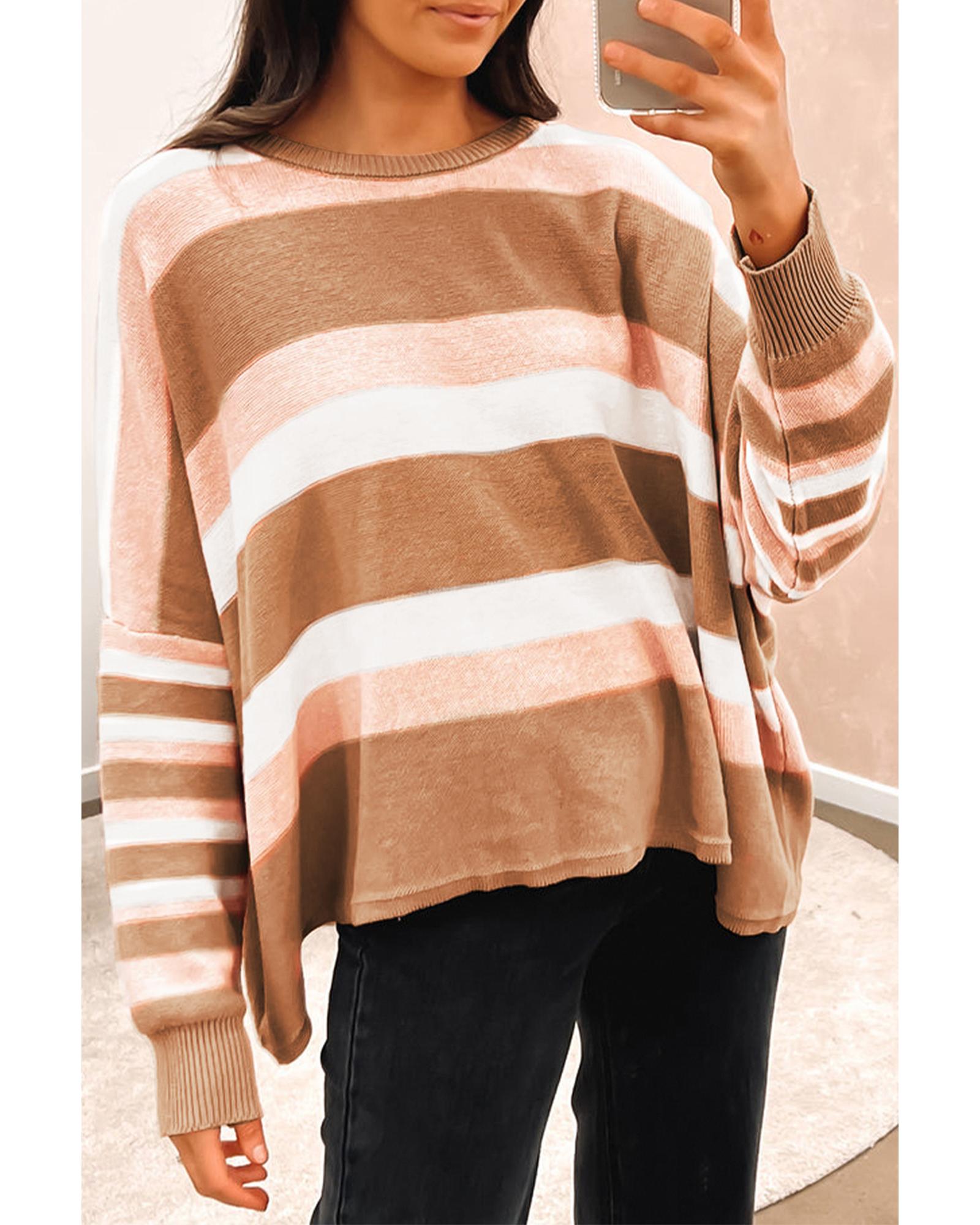 Multicolour Striped Knit Drop Shoulder Loose Sweater – M