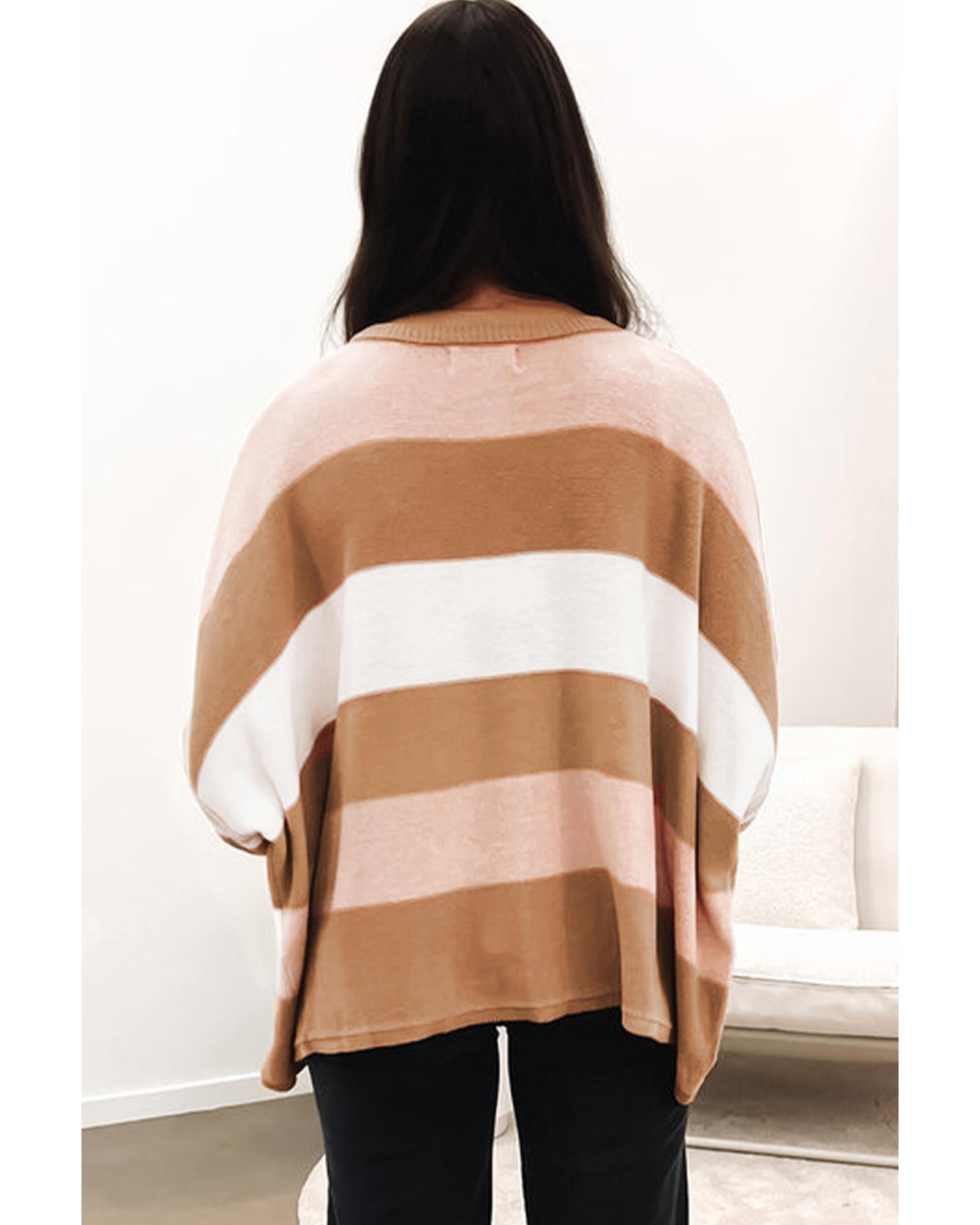 Multicolour Striped Knit Drop Shoulder Loose Sweater – XL