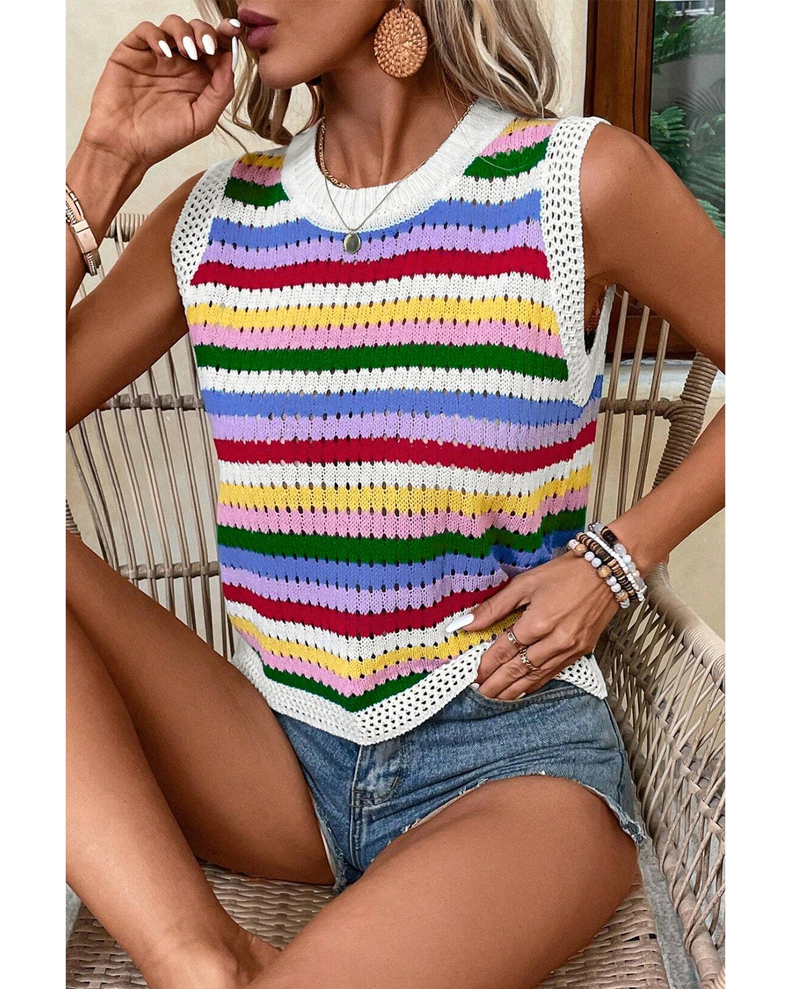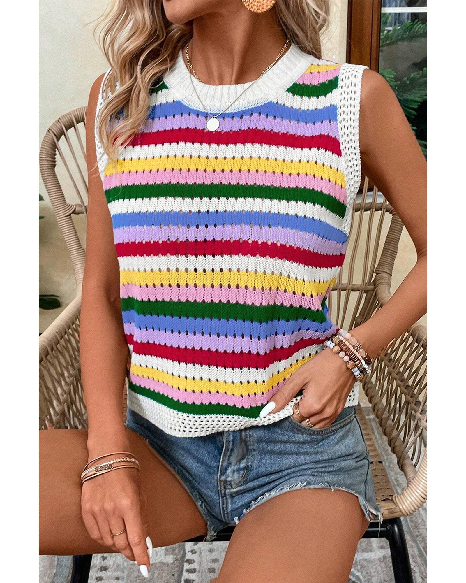 Multicolour Striped Knitted Eyelet Slim Sweater Vest – L