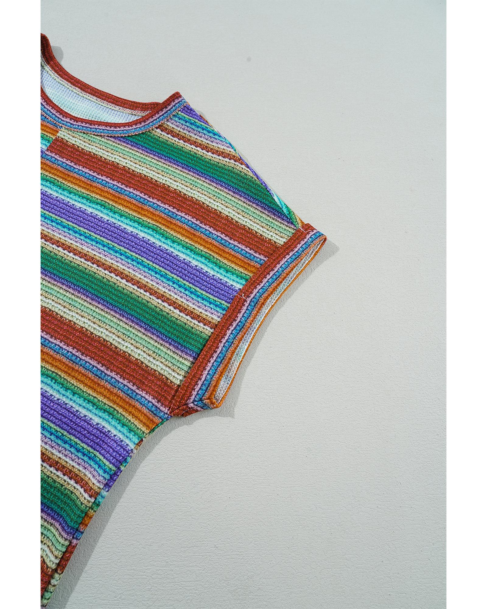 Multicolour Striped Pattern Twist Hem Short Sleeve Top - S
