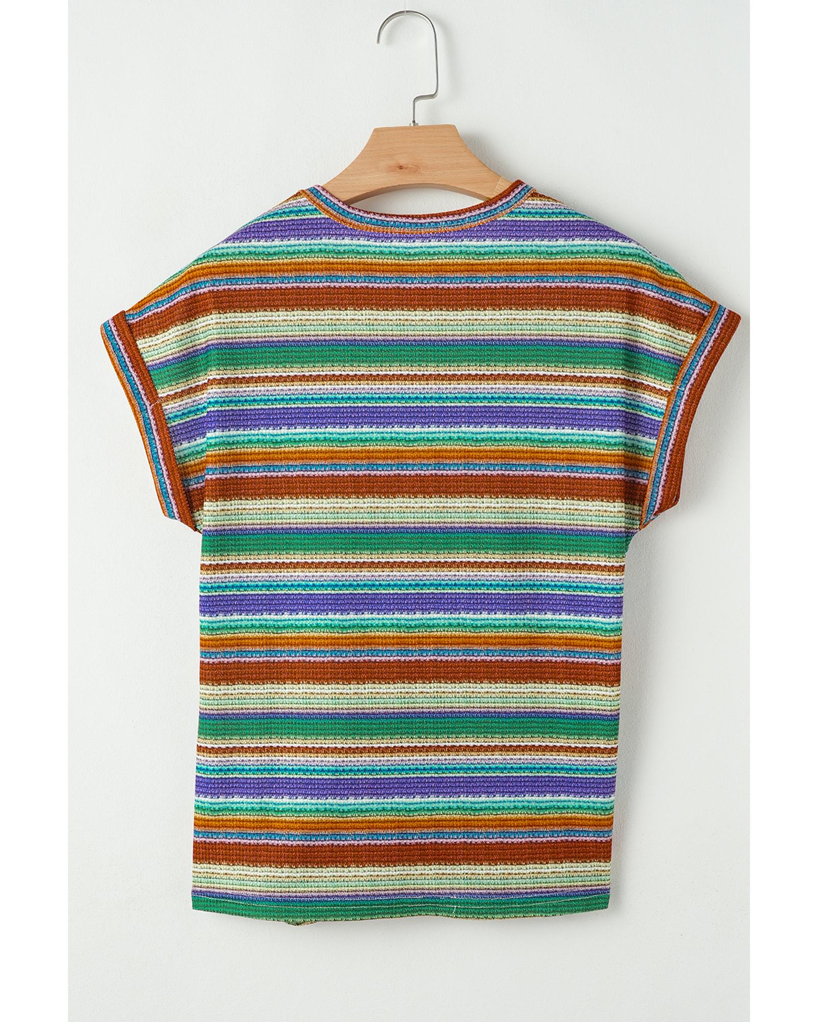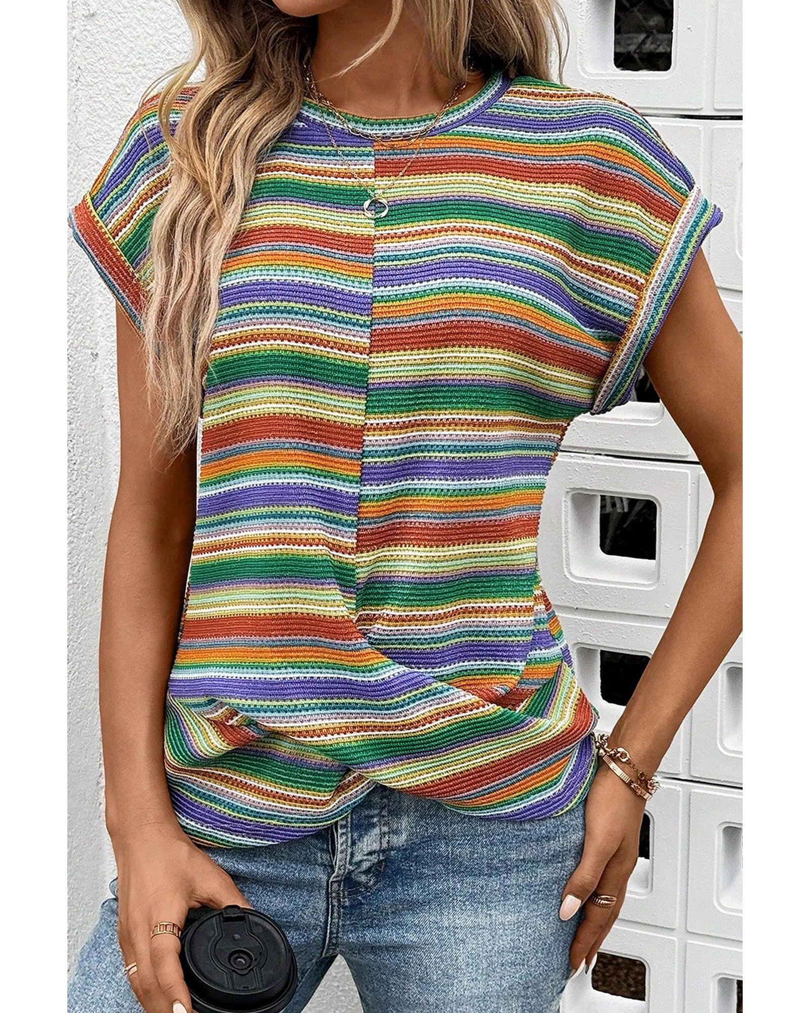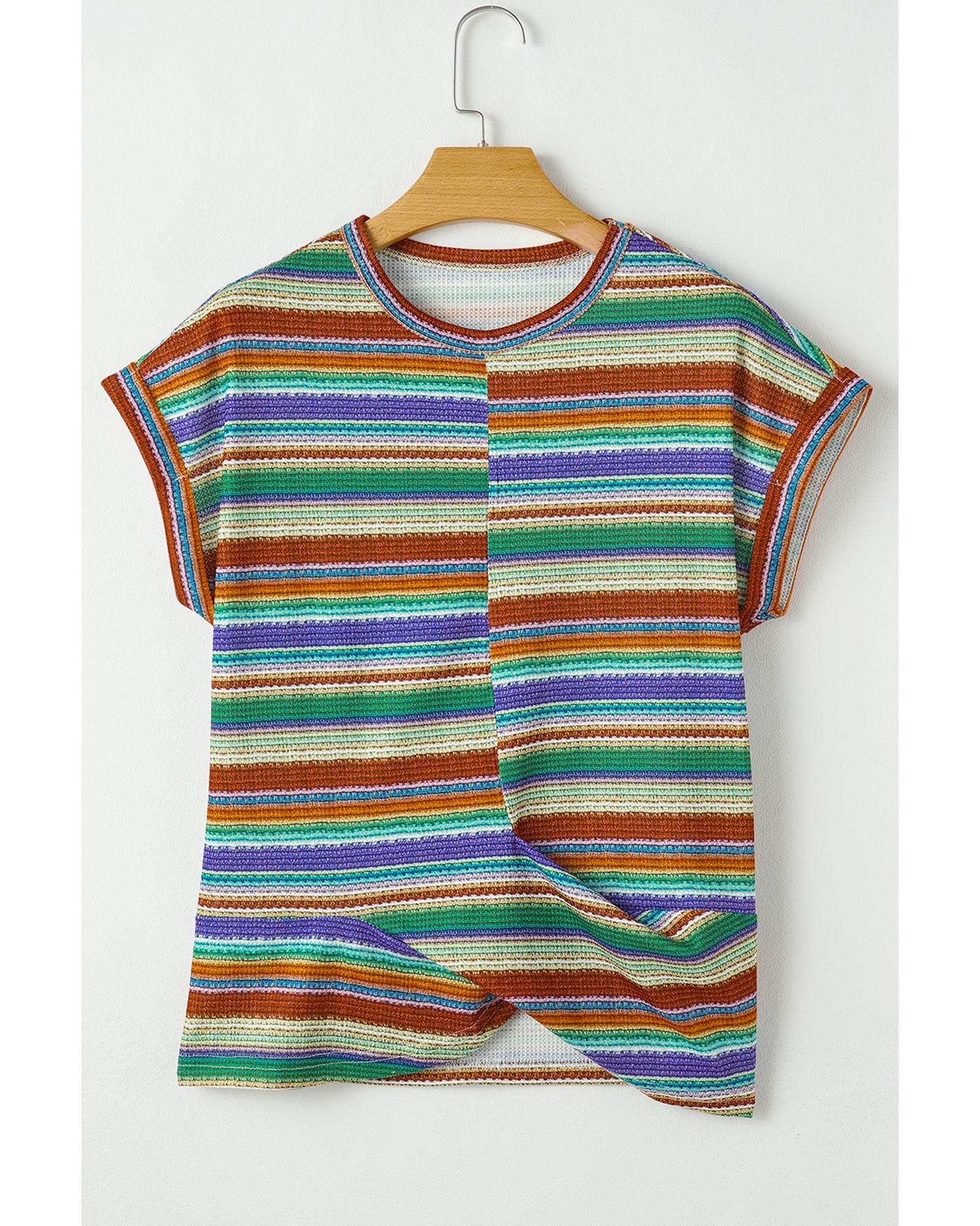 Multicolour Striped Pattern Twist Hem Short Sleeve Top – XL