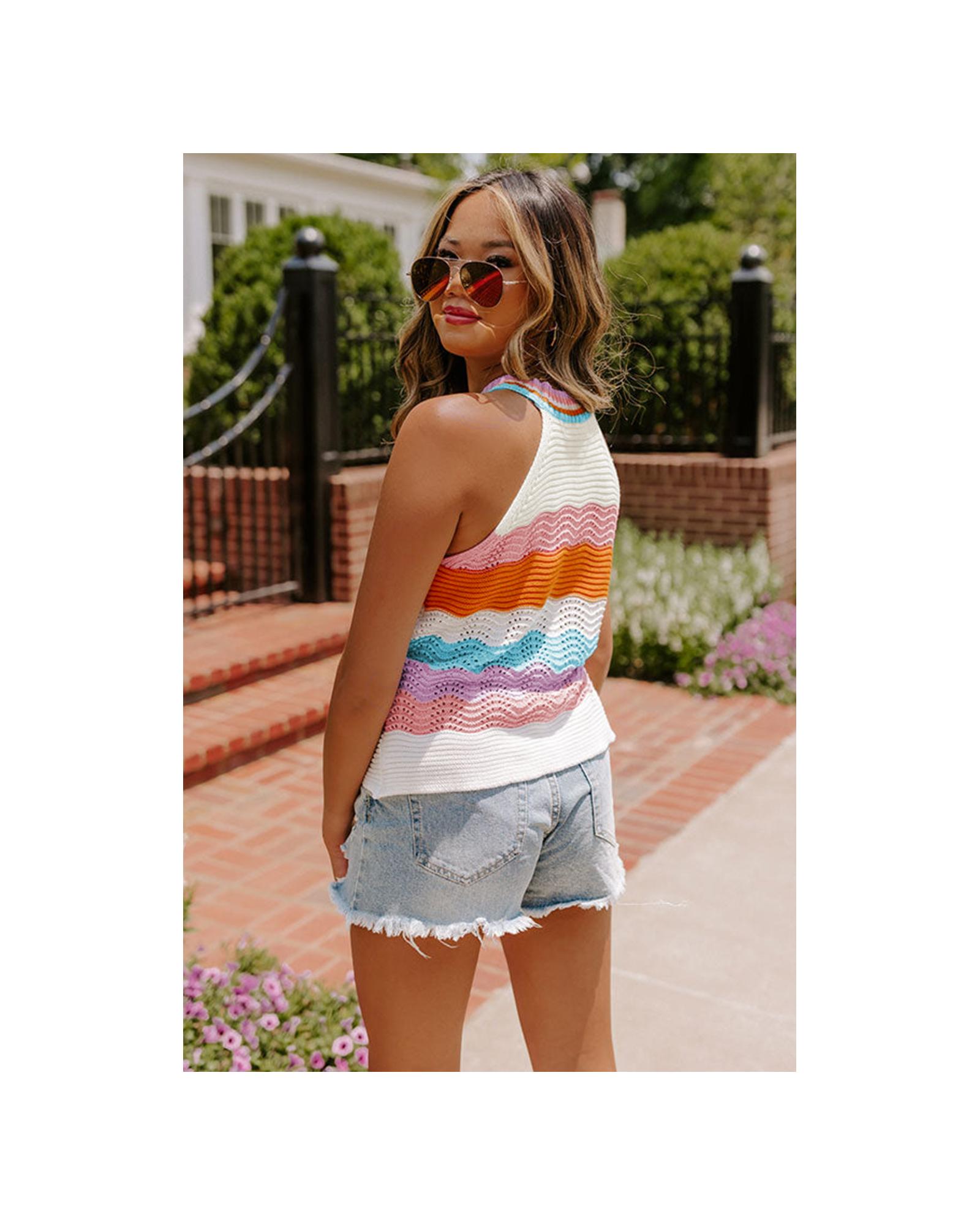 Multicolour Wavy Striped Print Textured Knit Sleeveless Sweater Top – M