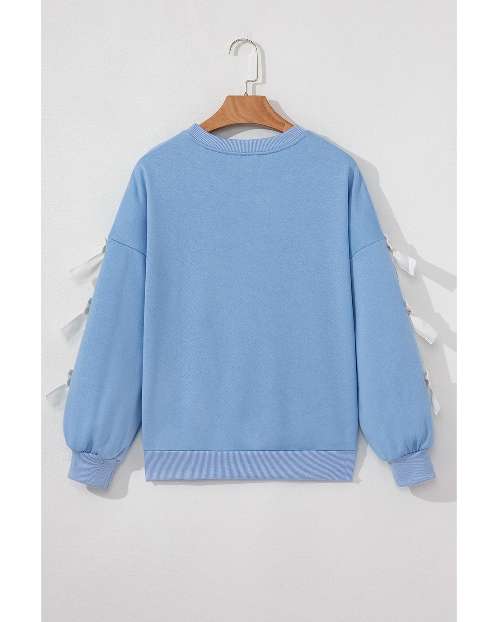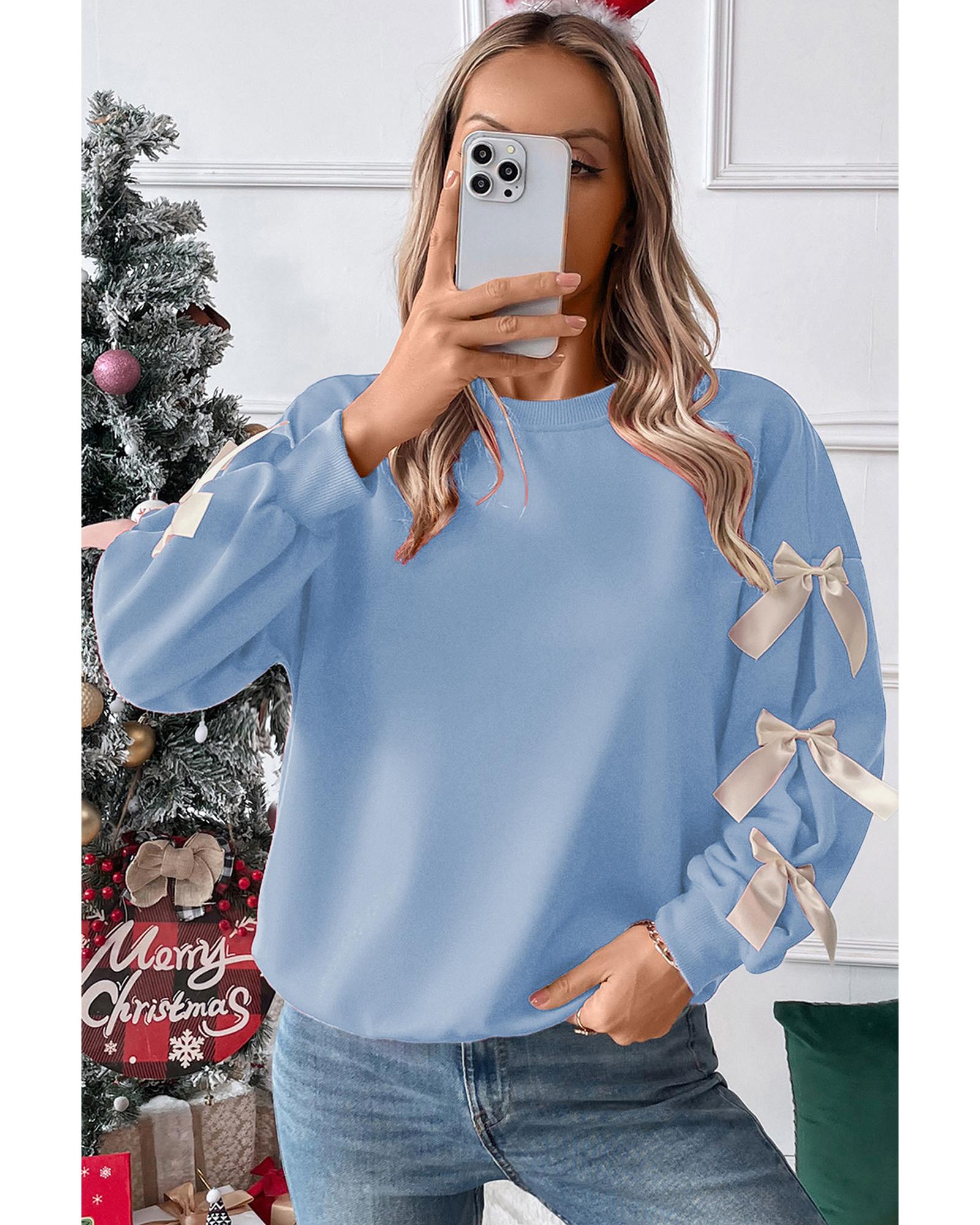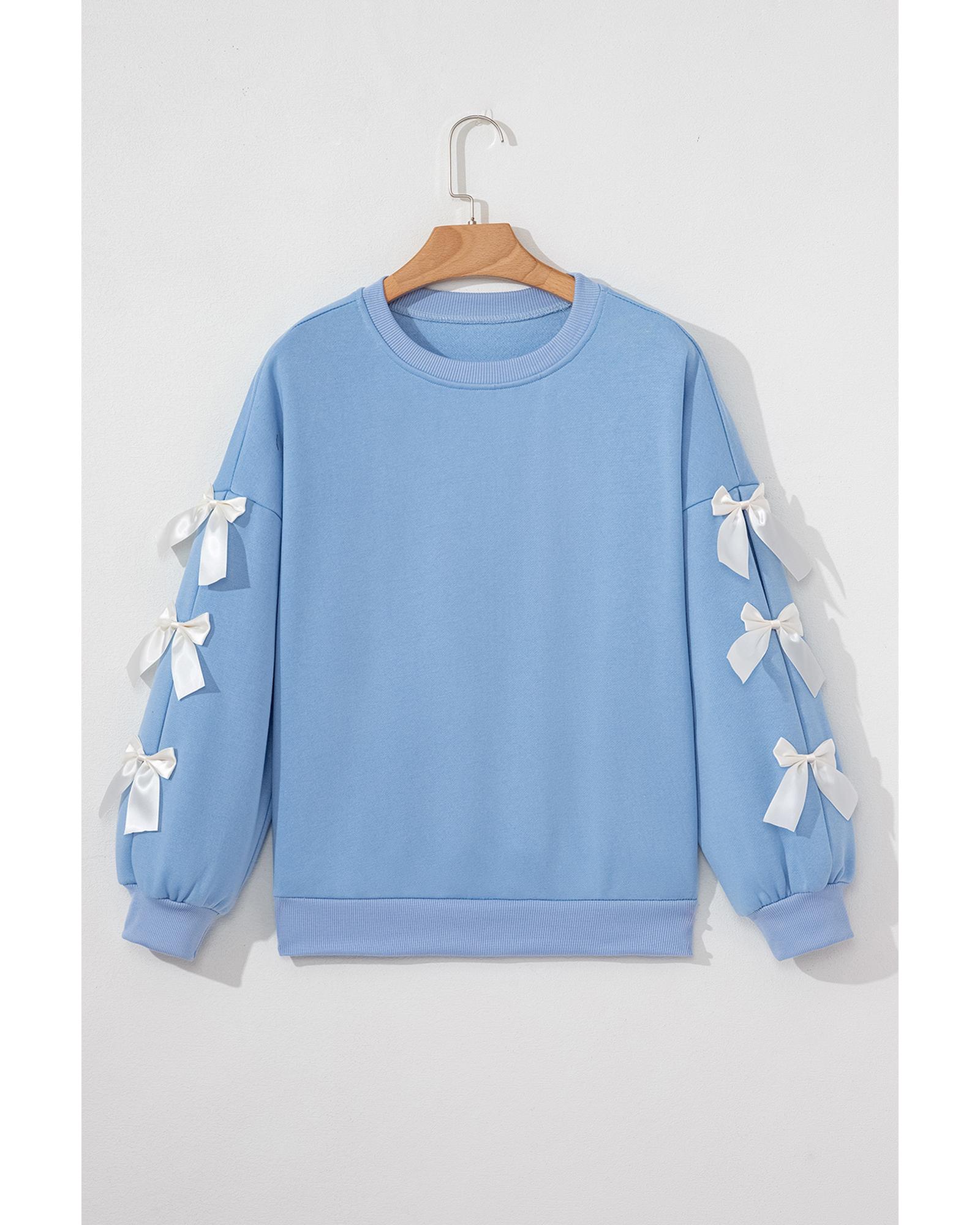 Myosotis Contrast Bow Decor Dropped Sleeve Crewneck Sweatshirt – M