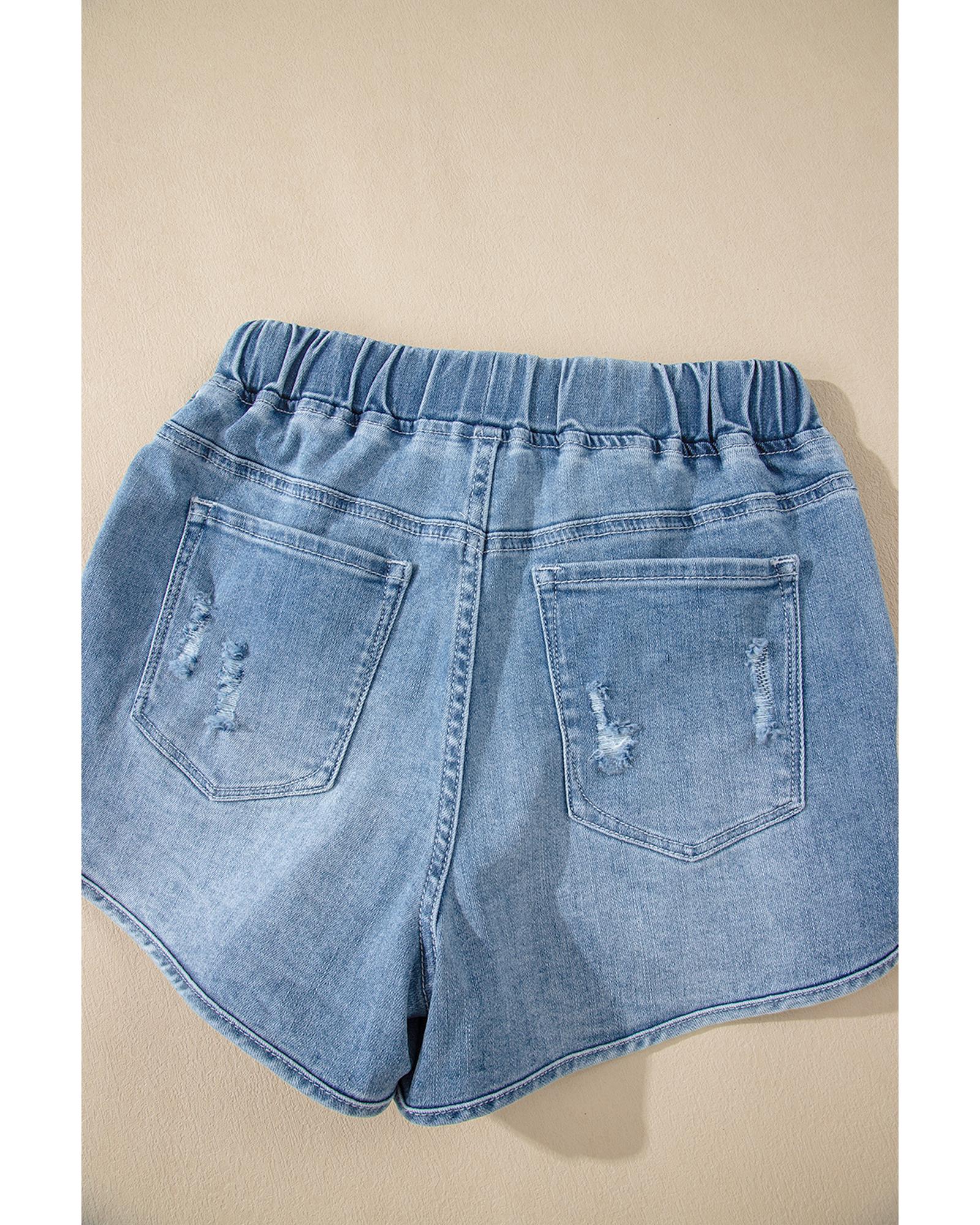 Myosotis Drawstring High Waist Distressed Denim Shorts - 16 US