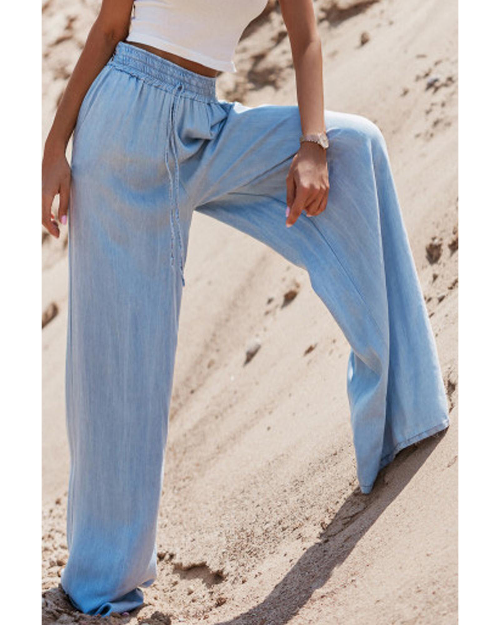 Myosotis Drawstring High Waist Wide Leg Denim Pants – L