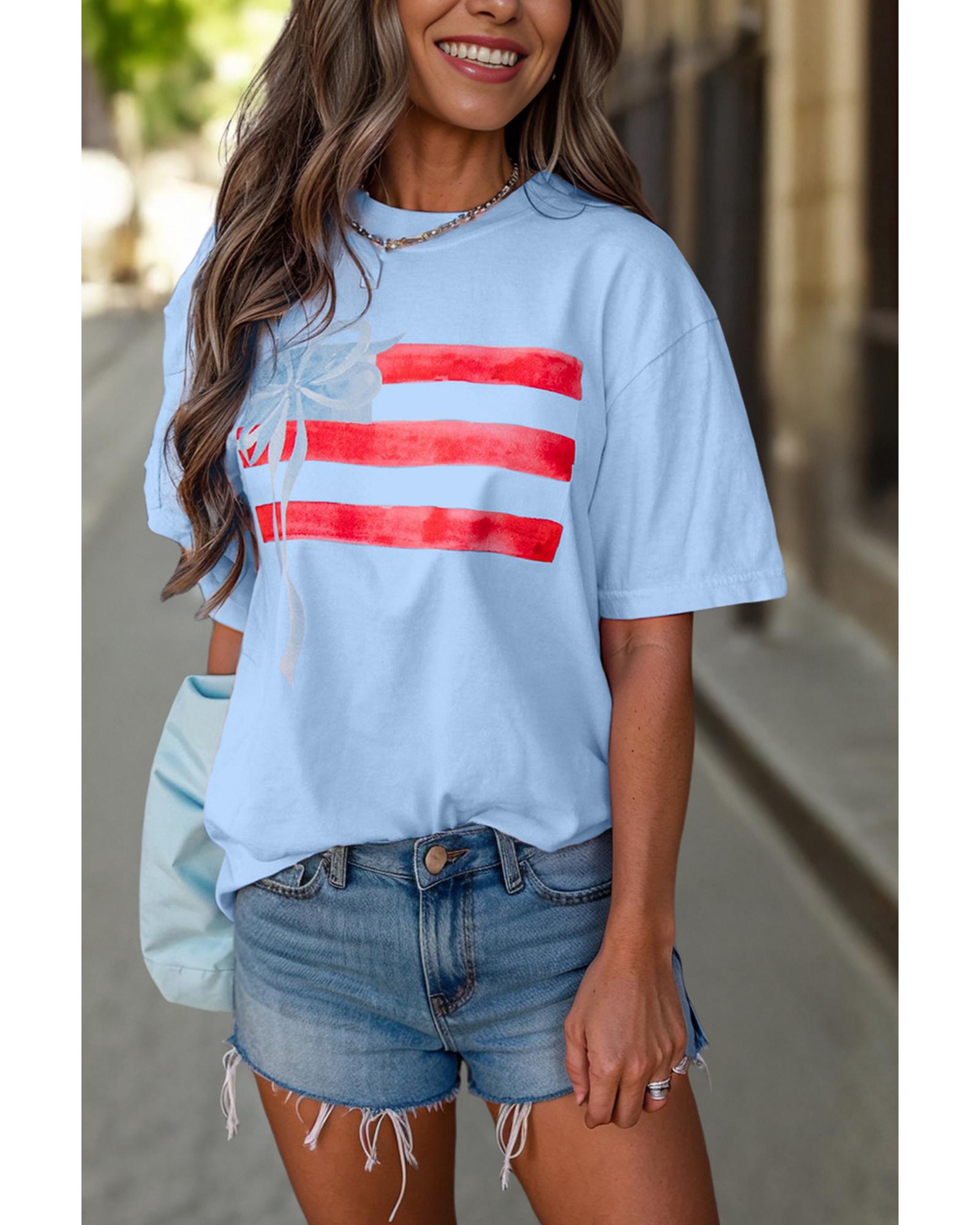 Myosotis Flag Bow Graphic Crewneck Tee – S