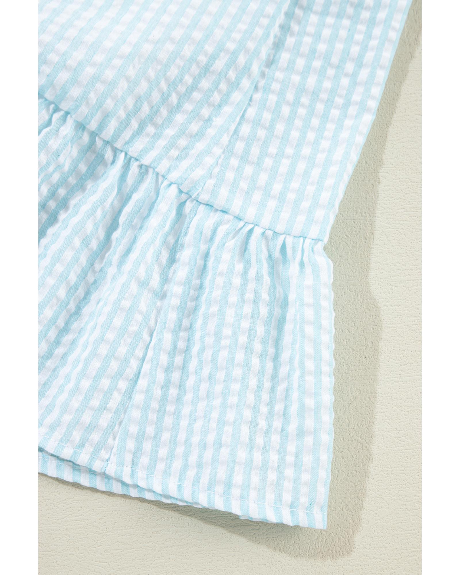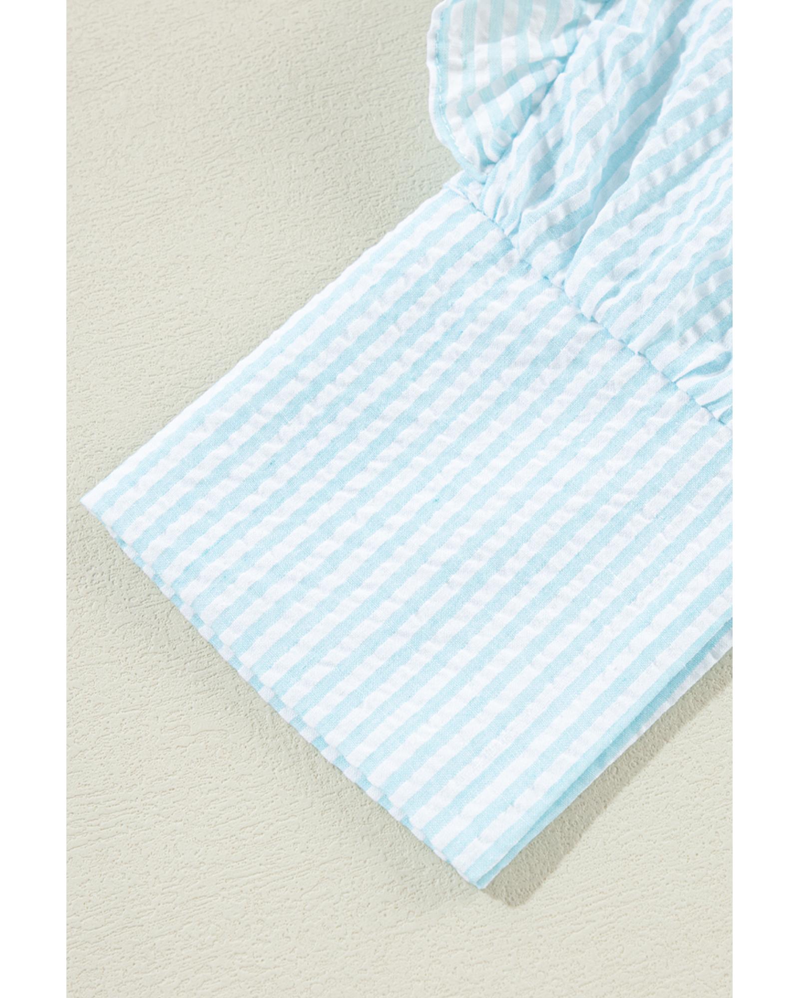Myosotis Seersucker Ruffled Puff Sleeve Stand Neck Mini Dress – XL