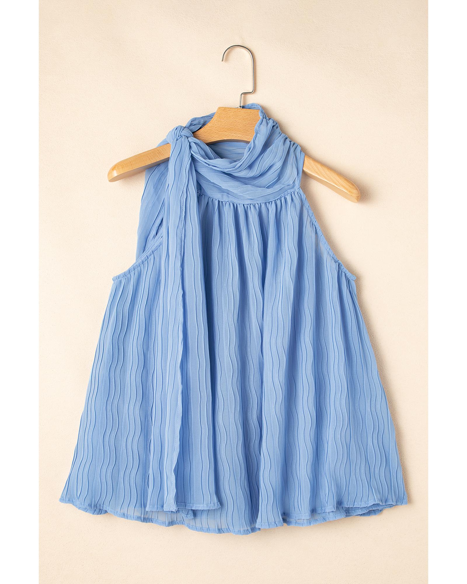 Myosotis Textured Pleated Tied Mock Neck Flowy Tank Top – XL