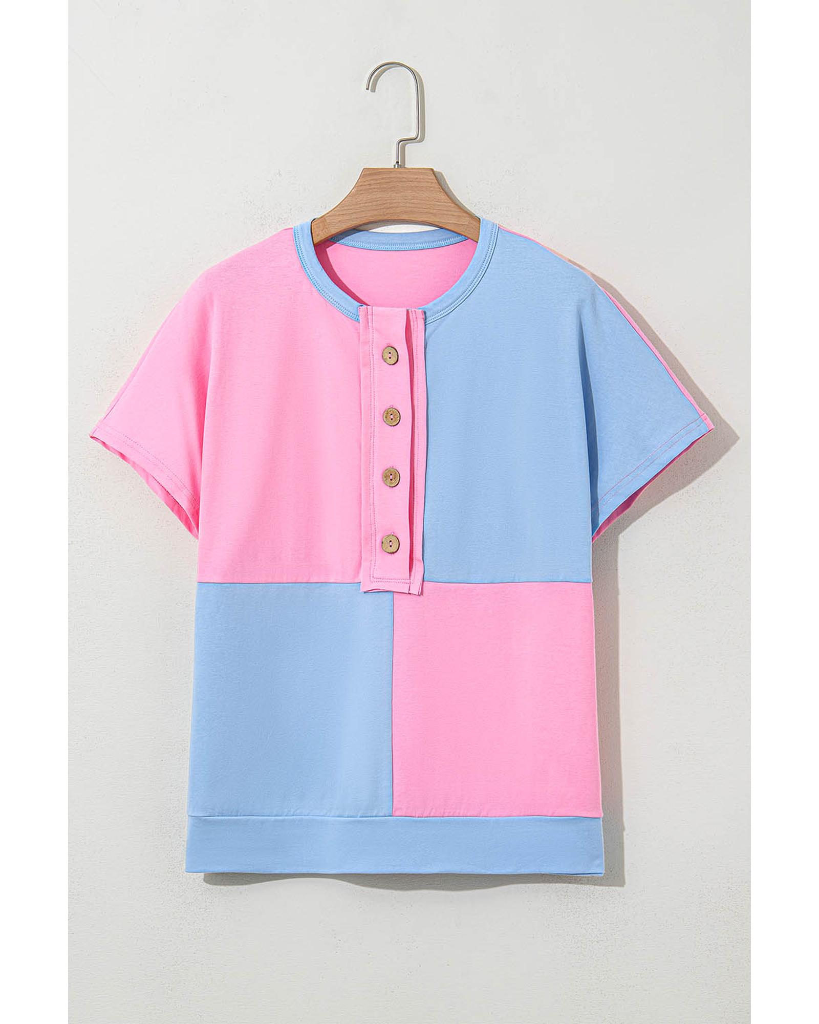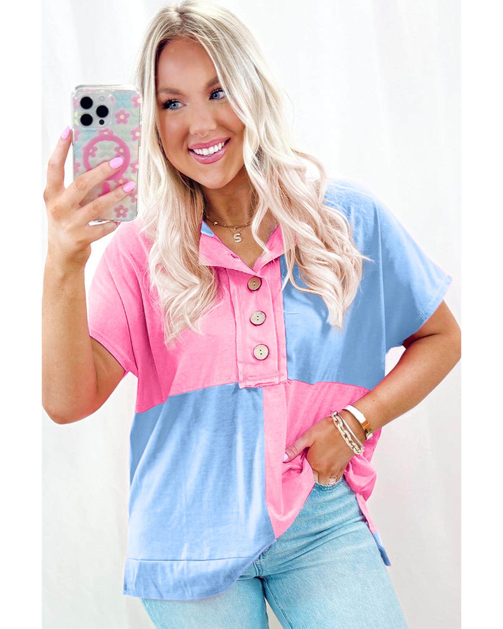 Myosotis Two Tone Half Buttons Collared T Shirt – L