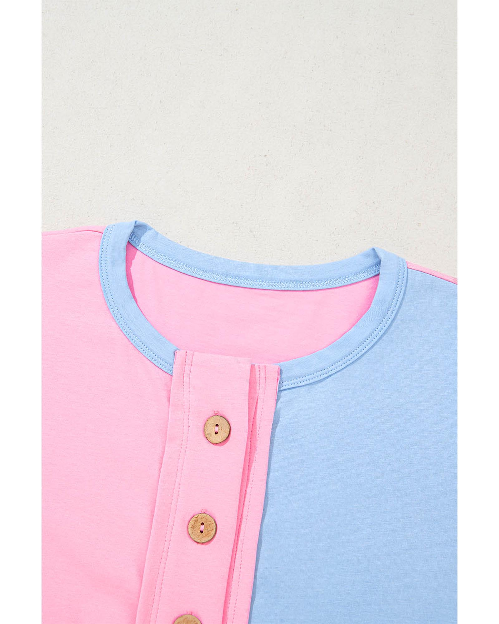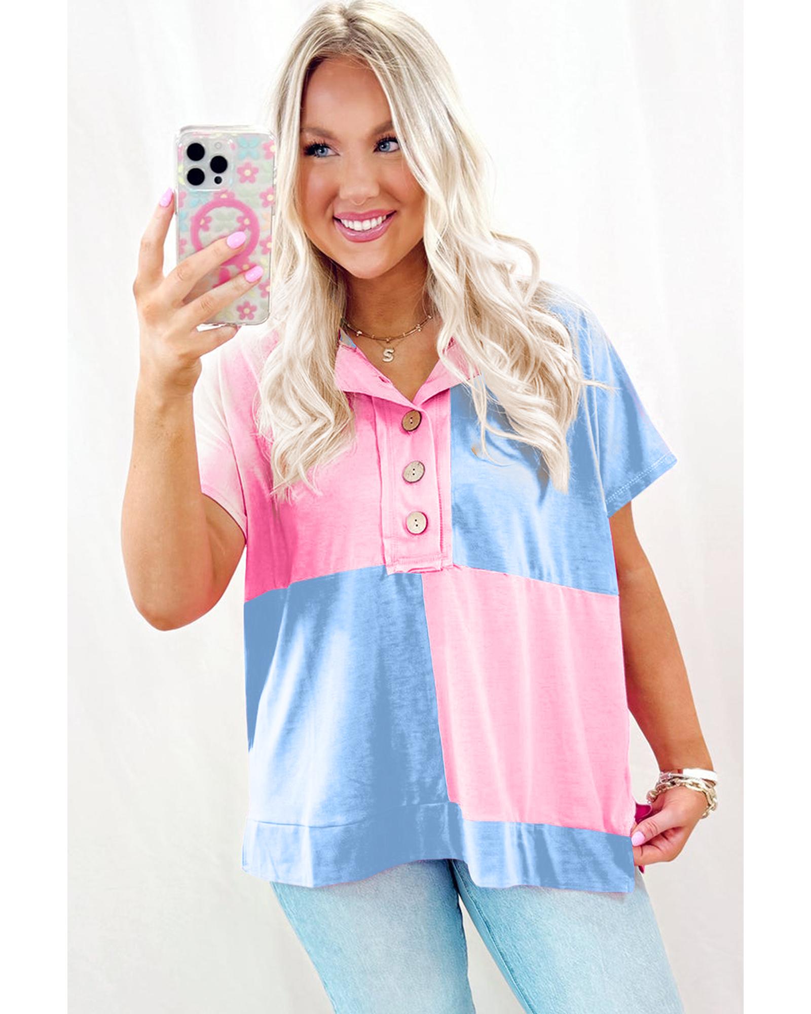 Myosotis Two Tone Half Buttons Collared T Shirt – S