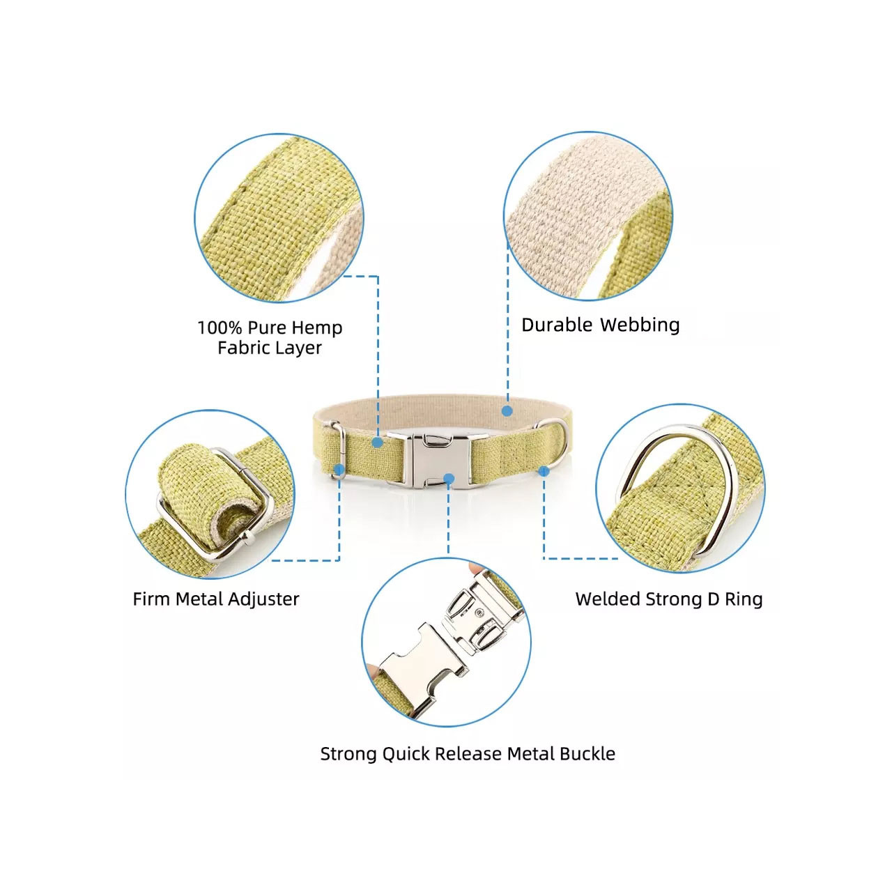 Natural Hemp & Cotton Dog Collar (Grass Green)
