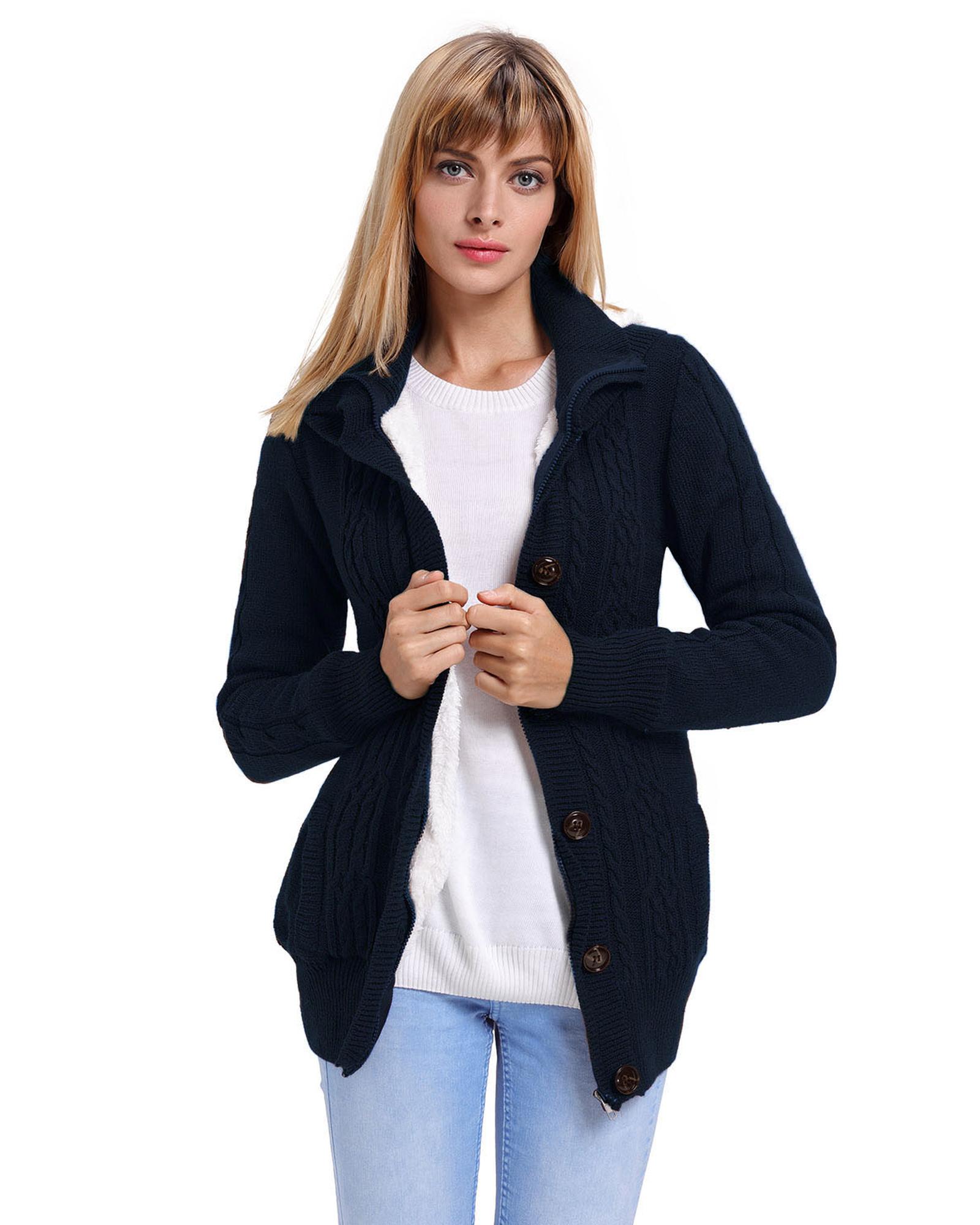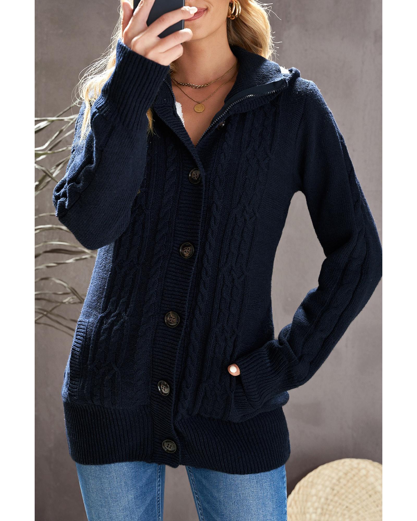 Navy Blue Long Sleeve Button-up Hooded Cardigans – S